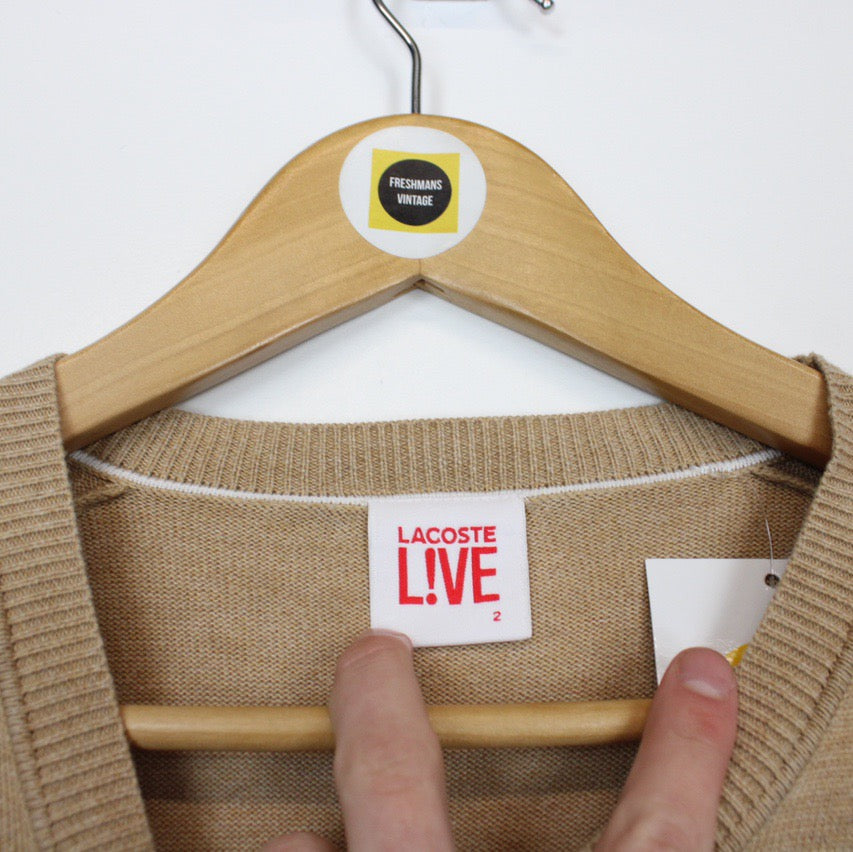 Vintage 00's Lacoste Grey, Beige and White Crew Neck Knitted Sweatshirt Jumper Size on label: Size 2 Our recommended size: Small Pit to pit (inches): 19 Length (inches): 25 All products listed are vintage unless stated otherwise in the description. These items are pre-loved and pre-worn, resulting in small signs of wear and fading. We think this adds to their unique authenticity, but if an item has any major flaws these will be stated. Please contact us if you have any further questions!