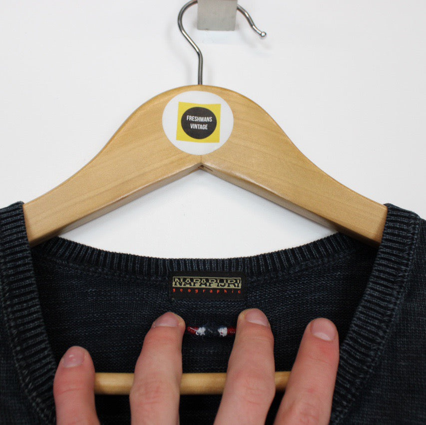 Vintage 00's Napapijri Navy Blue Knitted Sweatshirt Jumper Size on label: Medium Our recommended size: Small Pit to pit (inches): 20.5 Length (inches): 25 All products listed are vintage unless stated otherwise in the description. These items are pre-loved and pre-worn, resulting in small signs of wear and minor fading. We think this adds to their unique authenticity, but if an item has any major flaws these will be stated below. - The jumper has a small mark to the front and a mark to the back of the right sleeve, this is reflected in the price Please contact us if you have any further questions!