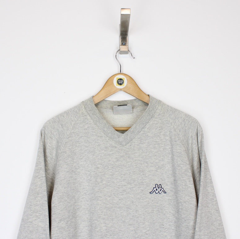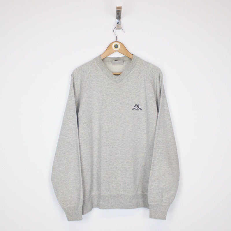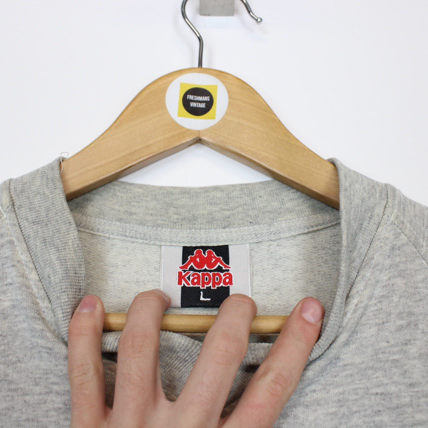 Vintage 90's Kappa Grey Spellout Sweatshirt Jumper Size on label: Large Our recommended size: Large Pit to pit (inches): 24.5 Length (inches): 26.5 All products listed are vintage unless stated otherwise in the description. These items are pre-loved and pre-worn, resulting in small signs of wear and minor fading. We think this adds to their unique authenticity, but if an item has any major flaws these will be stated below. Please contact us if you have any further questions!