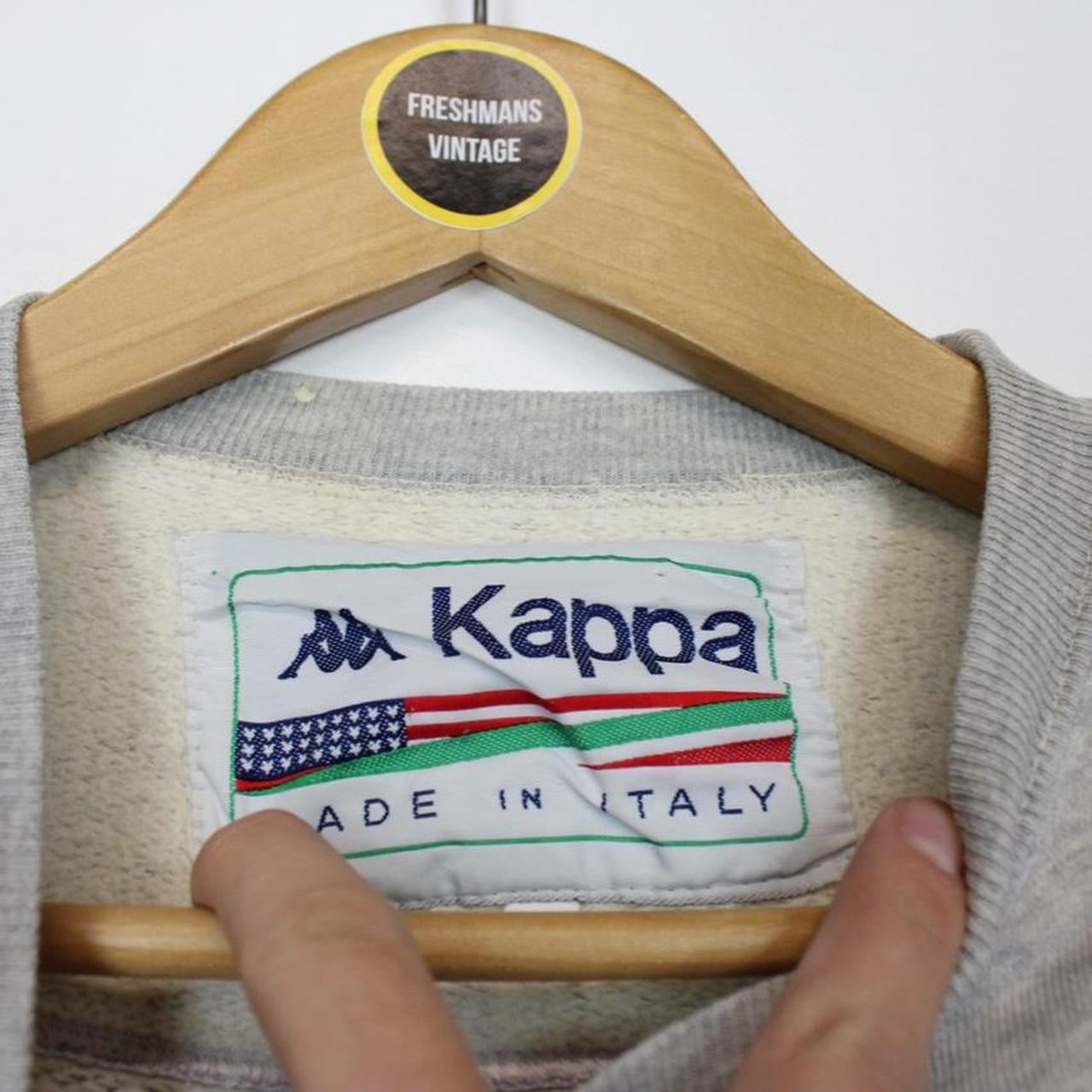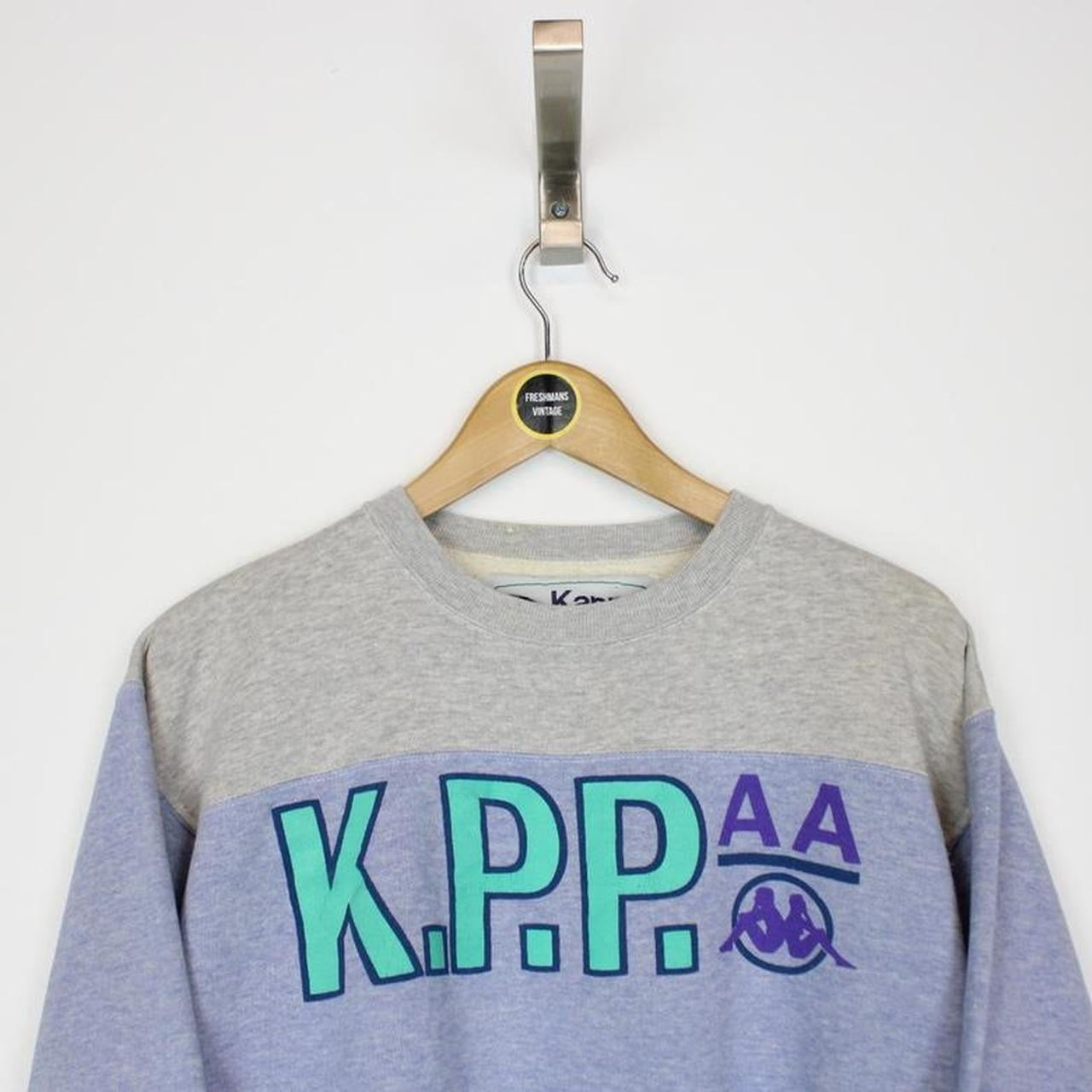Vintage 90s Kappa Grey and Blue Spellout Sweatshirt Jumper Size on label: Women's Medium Our recommended size: Women's Medium Pit to pit (inches): 25 Length (inches): 21.5 All products listed are vintage unless stated otherwise in the description. These items are pre-loved and pre-worn, resulting in small signs of wear and minor fading. We think this adds to their unique authenticity, but if an item has any major flaws these will be stated below. Please contact us if you have any further questions!