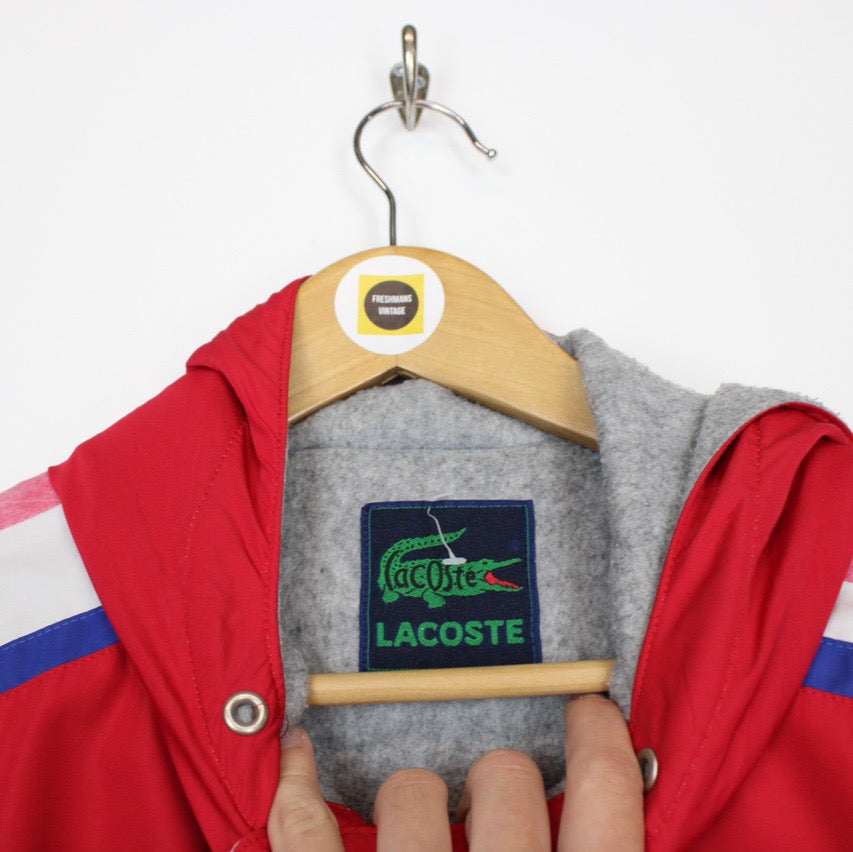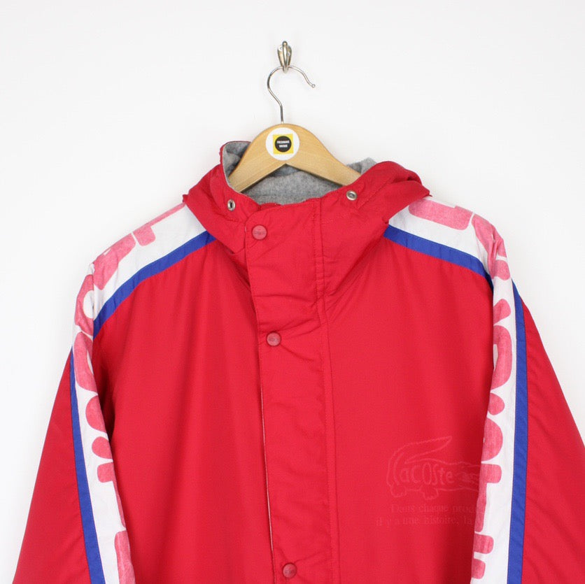 Vintage 90's Lacoste Red Zip Up Spellout Parka Style Jacket Size on label: Size 3 Our recommended size: XL Pit to pit (inches): 24.5 Length (inches): 34.5 All products listed are vintage unless stated otherwise in the description. These items are pre-loved and pre-worn, resulting in small signs of wear and sometimes minor flaws. We think this adds to their unique authenticity, but if an item has any bigger flaws these will be stated. - Does have a slight white mark on the left shoulder of the piece. Please contact us if you have any further questions!
