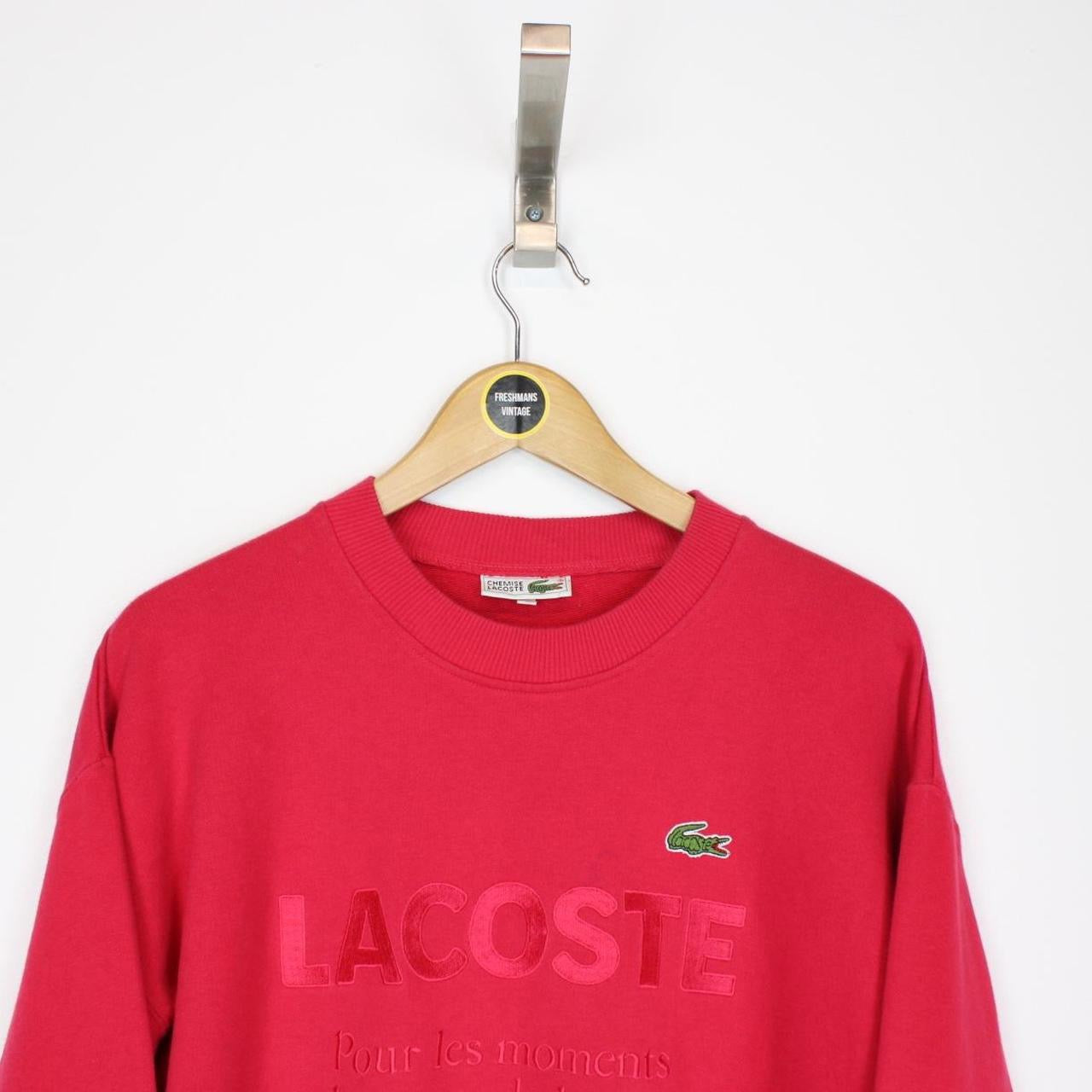 Vintage 90s Lacoste Red Crew Neck Spellout Sweatshirt Jumper