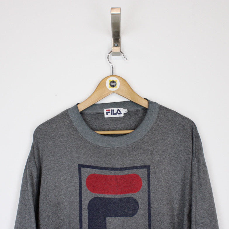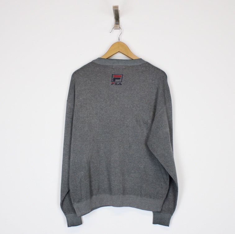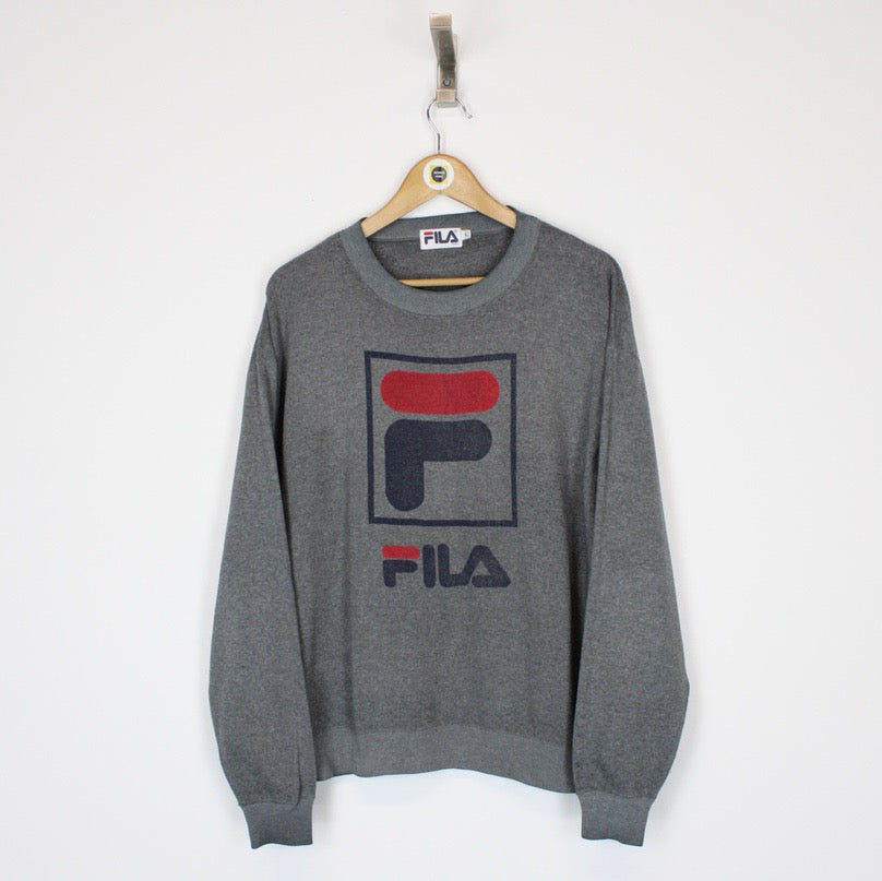 Vintage 90's Fila Grey and Navy Blue Crew Neck Spellout Sweatshirt Jumper Size on label: Women's Large Our recommended size: Women's Large Pit to pit (inches): 22 Length (inches): 25 All products listed are vintage unless stated otherwise in the description. These items are pre-loved and pre-worn, resulting in small signs of wear and minor fading. We think this adds to their unique authenticity, but if an item has any major flaws these will be stated below. Please contact us if you have any further questions!
