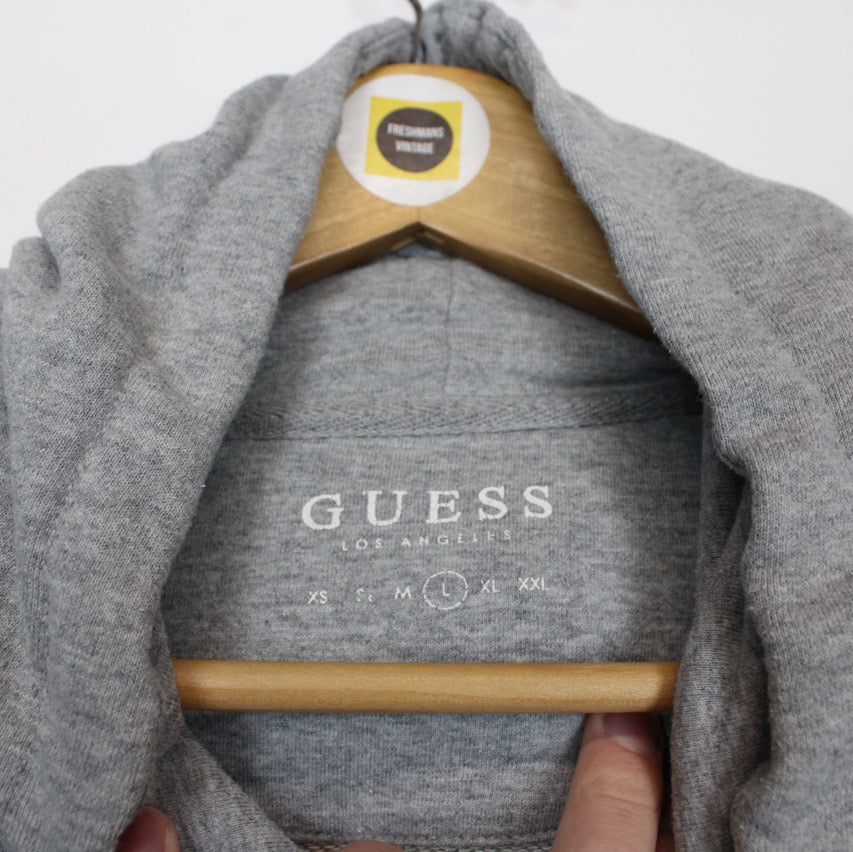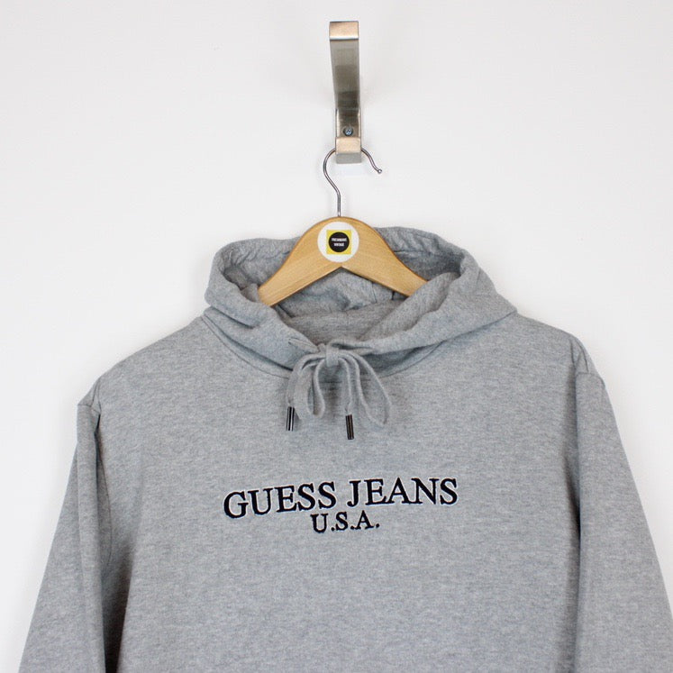 Vintage Guess Jeans USA Grey and Black Pullover Spellout Hoodie Jumper Size on label: Women's Large Our recommended size: Women's Large Pit to pit (inches): 21.5 Length (inches): 22 All products listed are vintage unless stated otherwise in the description. These items are pre-loved and pre-worn, resulting in small signs of wear and minor fading. We think this adds to their unique authenticity, but if an item has any major flaws these will be stated below. Please contact us if you have any further questions!