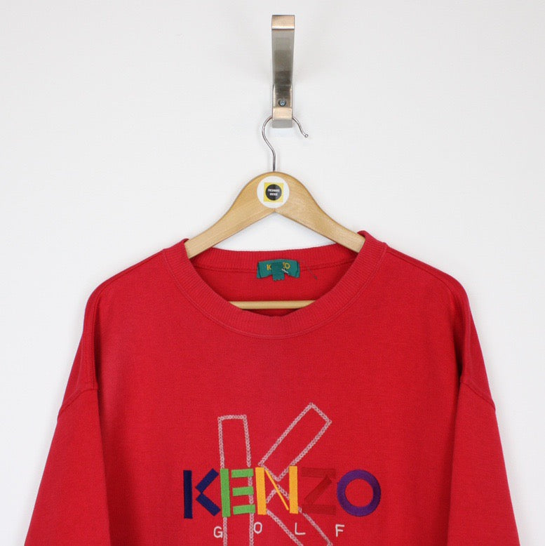 Vintage 90's Kenzo Red and Multicoloured Crew Neck Spellout Sweatshirt Jumper Size on label: 4 Our recommended size: Large Pit to pit (inches): 23.5 Length (inches): 27 All products listed are vintage unless stated otherwise in the description. These items are pre-loved and pre-worn, resulting in small signs of wear and sometimes minor flaws. We think this adds to their unique authenticity, but if an item has any bigger flaws these will be stated. - The sweatshirt has some marks to the sleeves, this is reflected in the price Please contact us if you have any further questions!