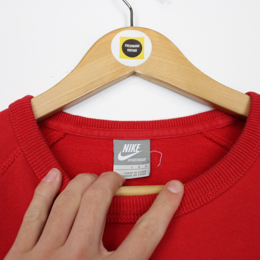 Vintage 00's Nike Red and White Crew Neck Spellout Sweatshirt Jumper Size on label: Women's Large Our recommended size: Women's Large Pit to pit (inches): 20 Length (inches): 26 All products listed are vintage unless stated otherwise in the description. These items are pre-loved and pre-worn, resulting in small signs of wear and sometimes minor flaws. We think this adds to their unique authenticity, but if an item has any bigger flaws these will be stated. Please contact us if you have any further questions!