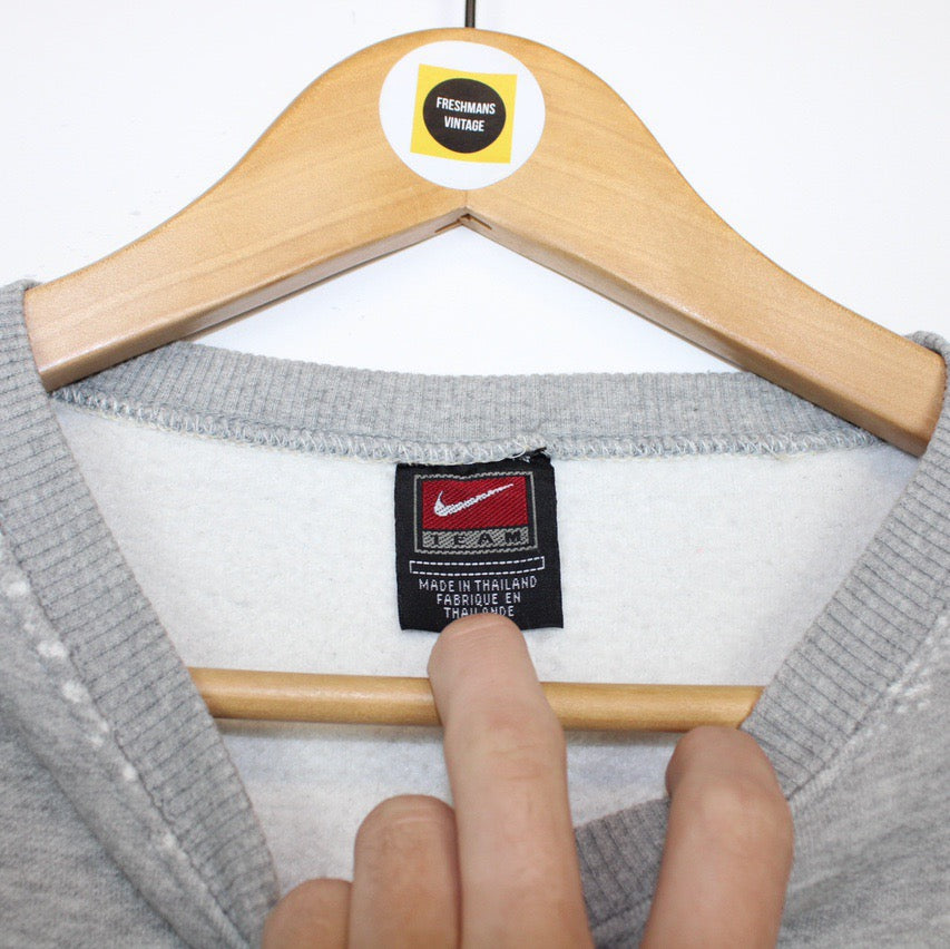 Vintage 00's Nike Grey and Black Crew Neck Central Swoosh Spellout Sweatshirt Jumper Size on label: N/A Our recommended size: Women's Large Pit to pit (inches): 22 Length (inches): 24.5 All products listed are vintage unless stated otherwise in the description. These items are pre-loved and pre-worn, resulting in small signs of wear and sometimes minor flaws. We think this adds to their unique authenticity, but if an item has any bigger flaws these will be stated. - The sweatshirt has a couple of marks throughout and some shredding to the collar, this is reflected in the price Please contact us if you have any further questions!