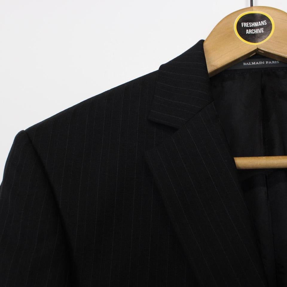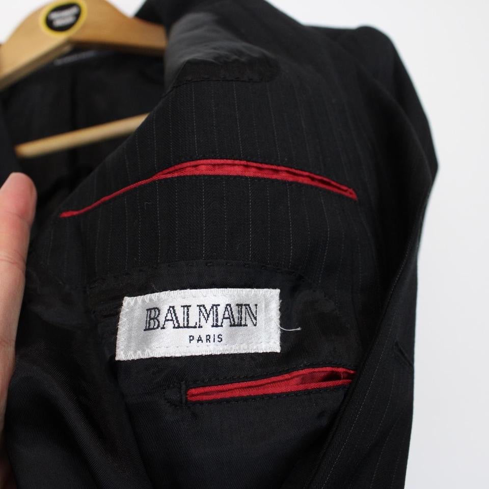 Balmain Paris Black and White Pinstripe Wool Single Breasted Blazer Jacket