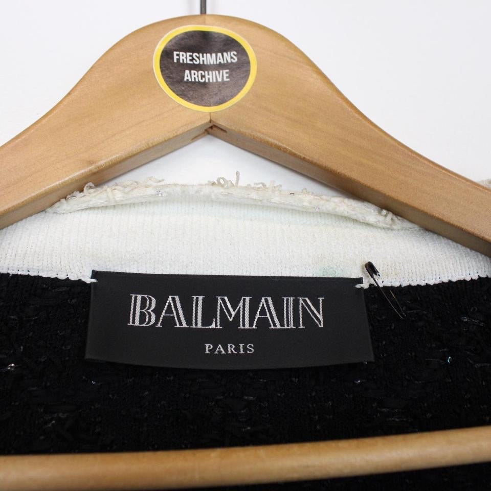 Balmain Paris Black and White Tweed Collarless Blazer Jacket