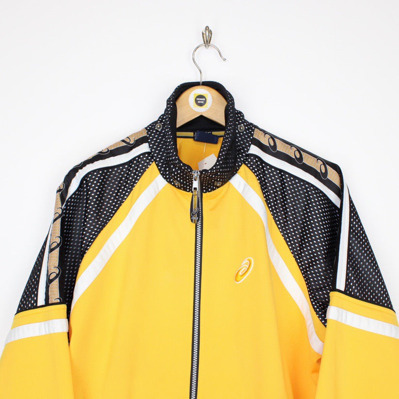 Vintage 90's Asics Yellow and Black Zip Up Spellout Track Jacket Size on label: Medium Our recommended size: Medium Pit to pit (inches): 23 Length (inches): 27 All products listed are vintage unless stated otherwise in the description. These items are pre-loved and pre-worn, resulting in small signs of wear and minor fading. We think this adds to their unique authenticity, but if an item has any major flaws these will be stated below. Please contact us if you have any further questions!