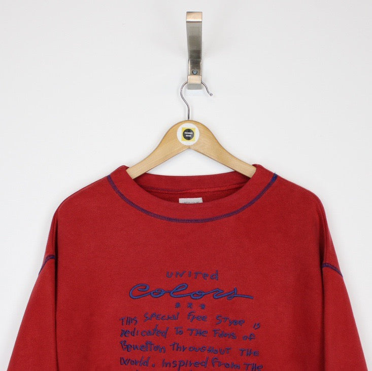 Vintage 90's Benetton Red Crew Neck Spellout Sweatshirt Jumper Size on label: 46 Our recommended size: Women's Medium Pit to pit (inches): 23 Length (inches): 24 All products listed are vintage unless stated otherwise in the description. These items are pre-loved and pre-worn, resulting in small signs of wear and minor fading. We think this adds to their unique authenticity, but if an item has any major flaws these will be stated below. Please contact us if you have any further questions!