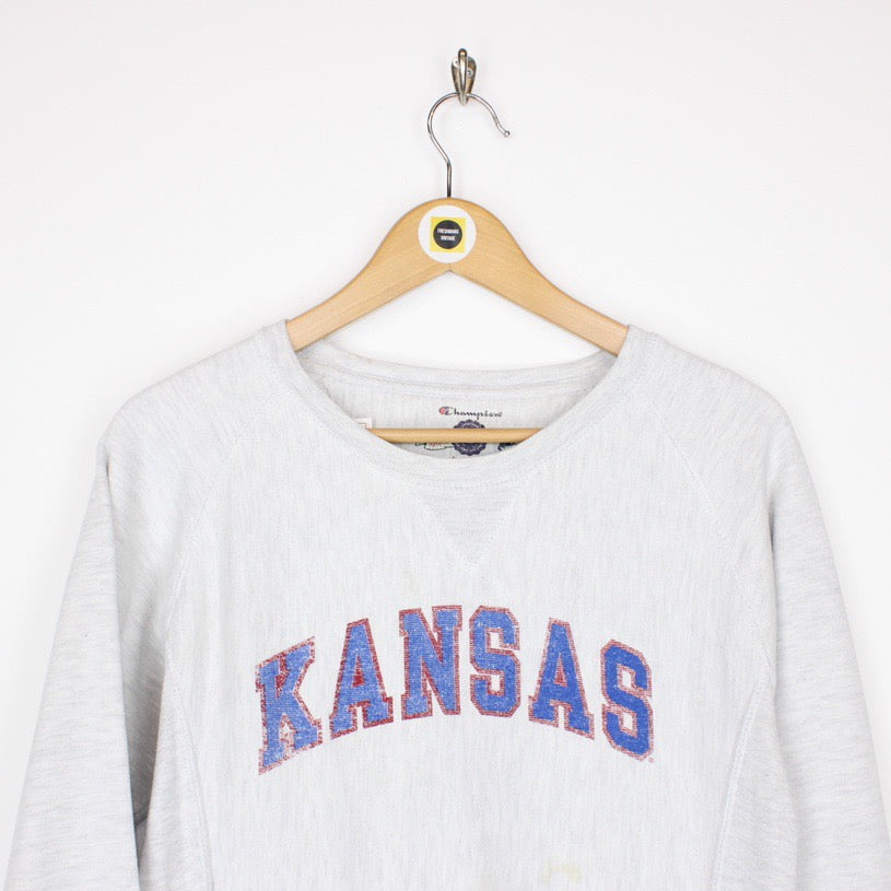 Vintage 90's Champion Kansas USA Light Grey Crew Neck Spellout Sweatshirt Jumper Size on label: Women's Medium Our recommended size: Women's Medium Pit to pit (inches): 19 Length (inches): 24 All products listed are vintage unless stated otherwise in the description. These items are pre-loved and pre-worn, resulting in small signs of wear and minor fading. We think this adds to their unique authenticity, but if an item has any major flaws these will be stated below. - The sweatshirt does have a some marking to the front and sleeves Please contact us if you have any further questions!