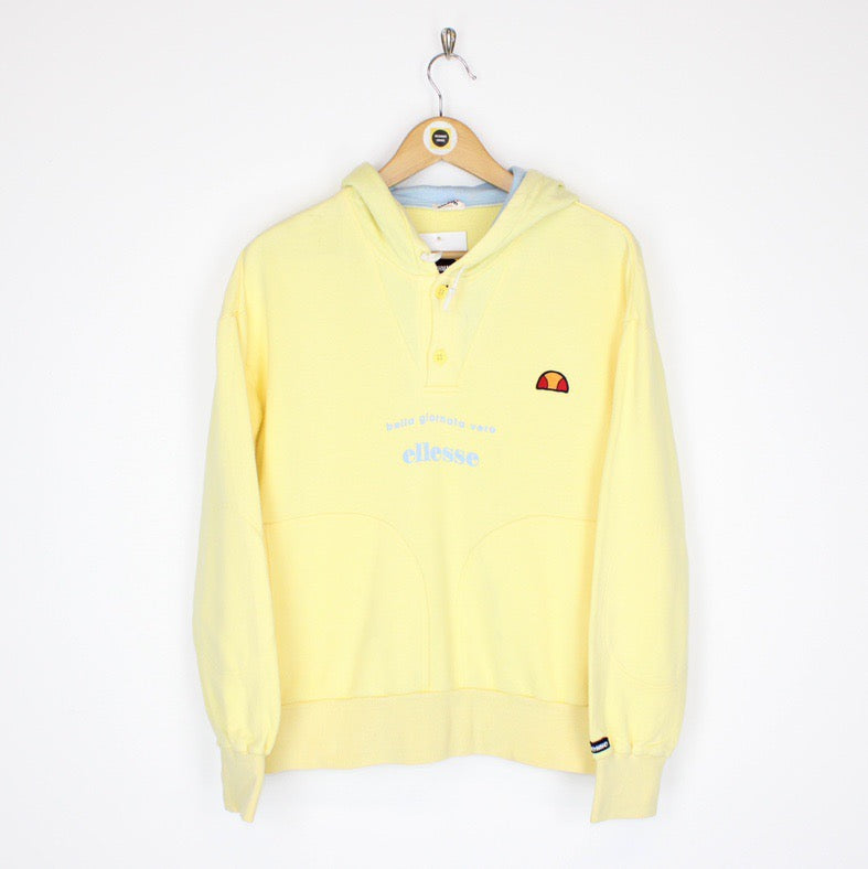 Vintage 90's Ellesse Pale Yellow and Light Blue Pullover Spellout Hoodie Jumper Size on label: Women's Medium Our recommended size: Women's Medium Pit to pit (inches): 21.5 Length (inches): 25 All products listed are vintage unless stated otherwise in the description. These items are pre-loved and pre-worn, resulting in small signs of wear and sometimes minor flaws. We think this adds to their unique authenticity, but if an item has any bigger flaws these will be stated. Please contact us if you have any further questions!