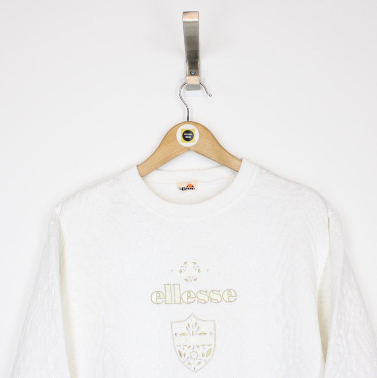 Vintage 90's Ellesse White Crew Neck Spellout Sweatshirt Jumper Size on label: Women's Medium Our recommended size: Women's Medium Pit to pit (inches): 20.5 Length (inches): 23 All products listed are vintage unless stated otherwise in the description. These items are pre-loved and pre-worn, resulting in small signs of wear and sometimes minor flaws. We think this adds to their unique authenticity, but if an item has any bigger flaws these will be stated. Please contact us if you have any further questions!