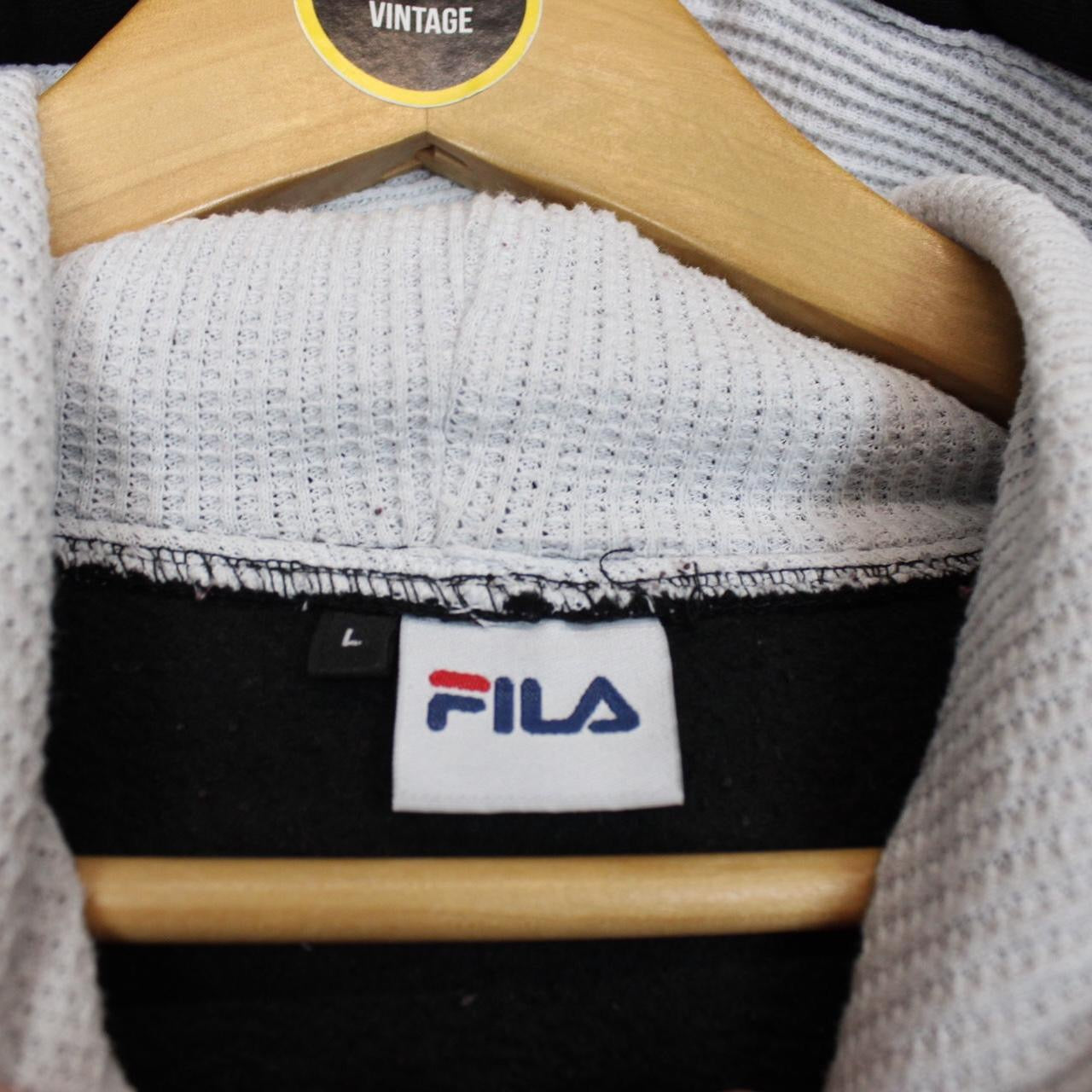 Vintage 00s Fila Red, White and Black Pullover Spellout Hoodie Jumper