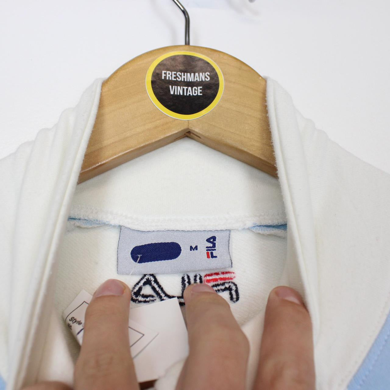 Vintage 00's Fila White and Light Blue Full Zip Track Jacket Size on label: Women's Medium Our recommended size: Women's Medium Pit to pit (inches): 19 Length (inches): 24 All products listed are vintage unless stated otherwise in the description. These items are pre-loved and pre-worn, resulting in small signs of wear and sometimes minor flaws. We think this adds to their unique authenticity, but if an item has any bigger flaws these will be stated. Please contact us if you have any further questions!