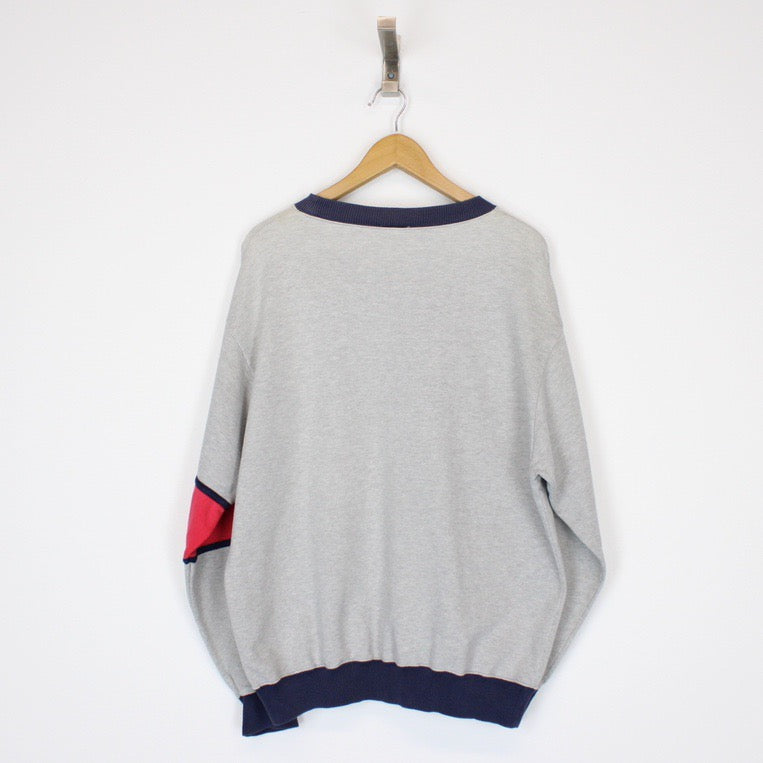 Vintage 90's Lacoste Grey and Navy Blue Crew Neck Spellout Sweatshirt Jumper Size on label: 4 Our recommended size: Medium Pit to pit (inches): 23 Length (inches): 26 All products listed are vintage unless stated otherwise in the description. These items are pre-loved and pre-worn, resulting in small signs of wear and minor fading. We think this adds to their unique authenticity, but if an item has any major flaws these will be stated below. - The sweatshirt has a small mark to the left sleeve, this is reflected in the price Please contact us if you have any further questions!