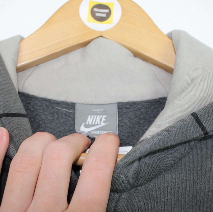 Vintage 00's Nike Grey and Black Striped Zip Up Hoodie Jumper Size on label: Women's Medium Our recommended size: Women's Medium Pit to pit (inches): 20 Length (inches): 24 All products listed are vintage unless stated otherwise in the description. These items are pre-loved and pre-worn, resulting in small signs of wear and fading. We think this adds to their unique authenticity, but if an item has any major flaws these will be stated. - Jumper does have some faint marking to the back as seen in the 3rd picture! Please contact us if you have any further questions!