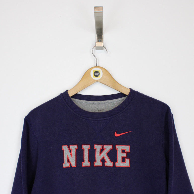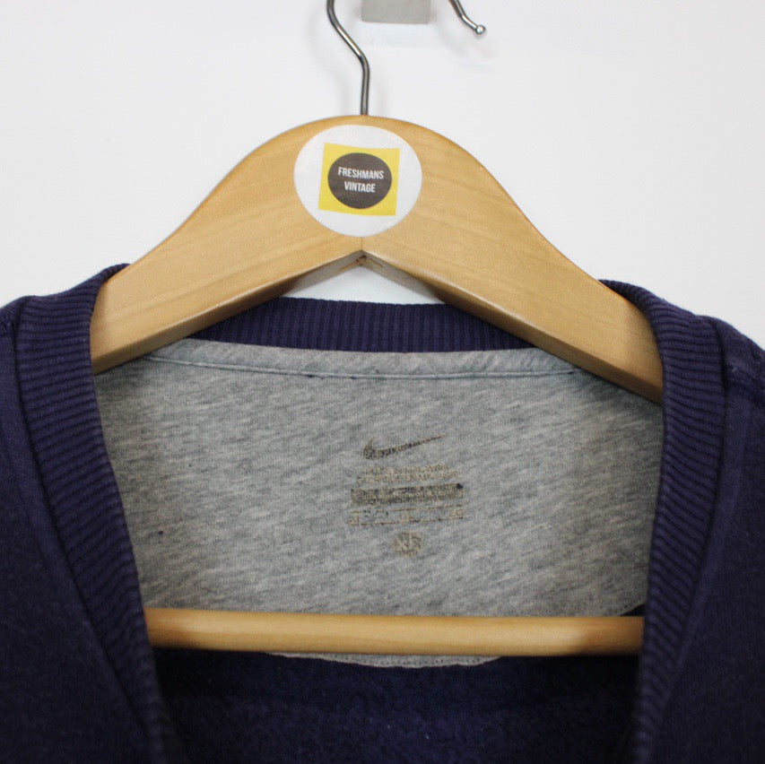 Vintage 00's Nike Navy Blue Crew Neck Spellout Sweatshirt Jumper Size on label: XL Our recommended size: Women's Medium Pit to pit (inches): 21 Length (inches): 24 All products listed are vintage unless stated otherwise in the description. These items are pre-loved and pre-worn, resulting in small signs of wear and minor fading. We think this adds to their unique authenticity, but if an item has any major flaws these will be stated below. Please contact us if you have any further questions!