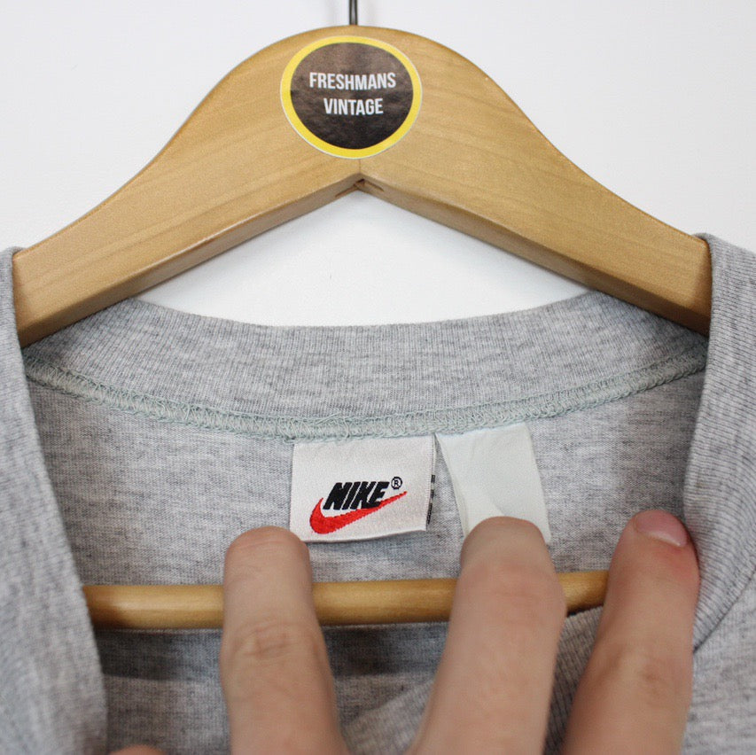 Vintage 90's Nike Grey Short Sleeve Spellout T-Shirt Size on label: N/A Our recommended size: Medium Pit to pit (inches): 21 Length (inches): 26 All products listed are vintage unless stated otherwise in the description. These items are pre-loved and pre-worn, resulting in small signs of wear and fading. We think this adds to their unique authenticity, but if an item has any major flaws these will be stated. Please contact us if you have any further questions!