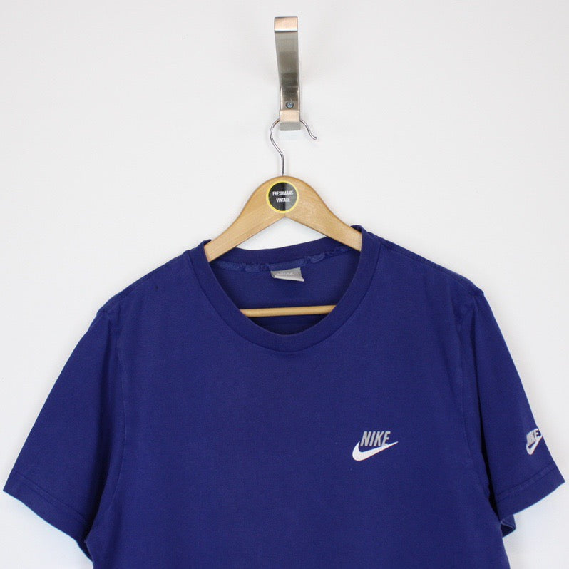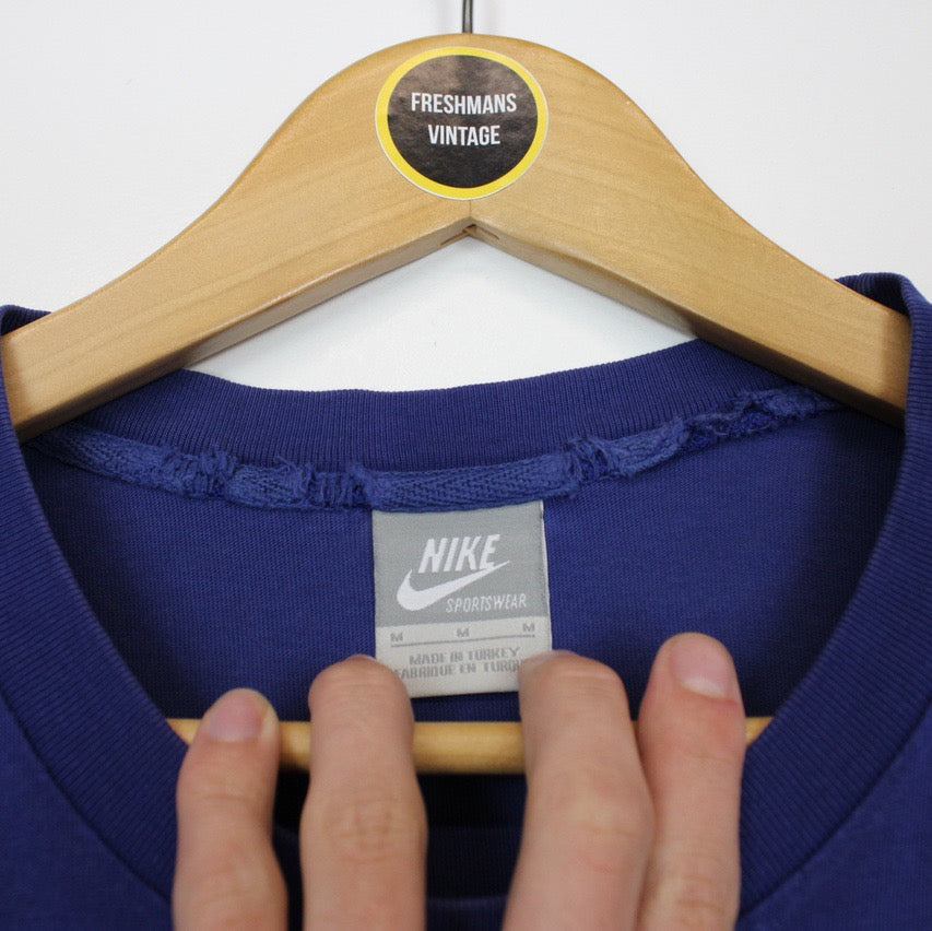 Vintage 00's Nike Blue Short Sleeve Spellout T-Shirt Size on label: Medium Our recommended size: Medium Pit to pit (inches): 19.5 Length (inches): 27 All products listed are vintage unless stated otherwise in the description. These items are pre-loved and pre-worn, resulting in small signs of wear and fading. We think this adds to their unique authenticity, but if an item has any major flaws these will be stated. - The t-shirt does have a pin hole to the right shoulder, this is reflected in the price Please contact us if you have any further questions!