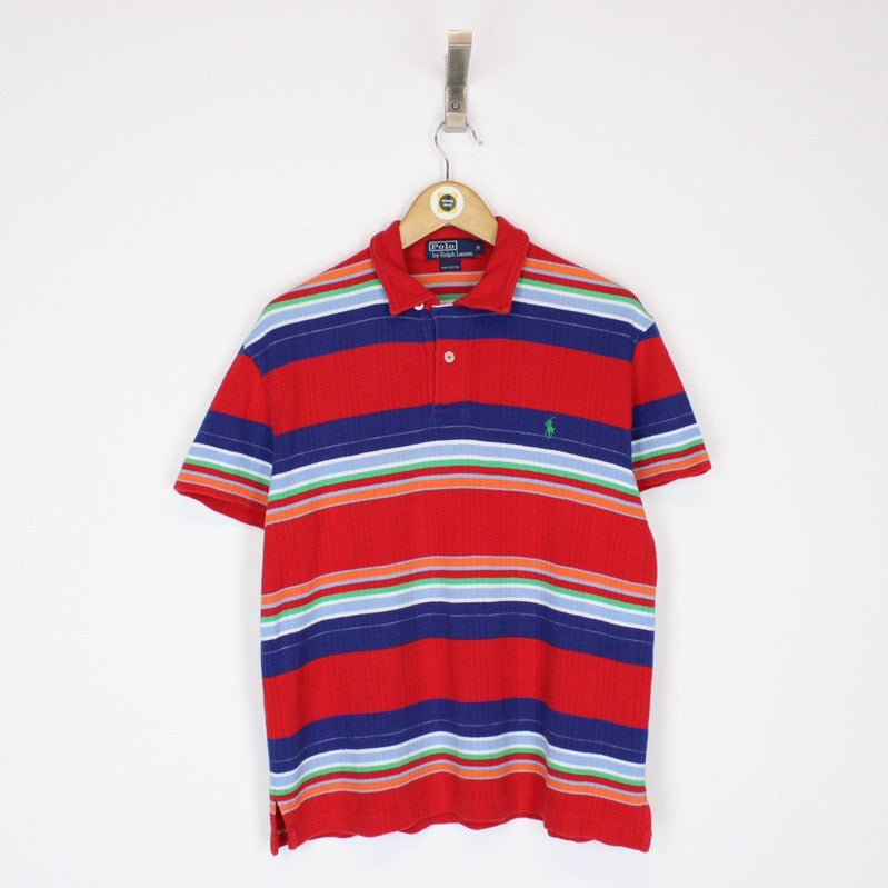 Vintage 00's Polo Ralph Lauren Multicoloured Striped Short Sleeve Polo Shirt Size on label: Medium Our recommended size: Medium Pit to pit (inches): 22.5 Length (inches): 26.5 All products listed are vintage unless stated otherwise in the description. These items are pre-loved and pre-worn, resulting in small signs of wear and minor fading. We think this adds to their unique authenticity, but if an item has any major flaws these will be stated below. Please contact us if you have any further questions!