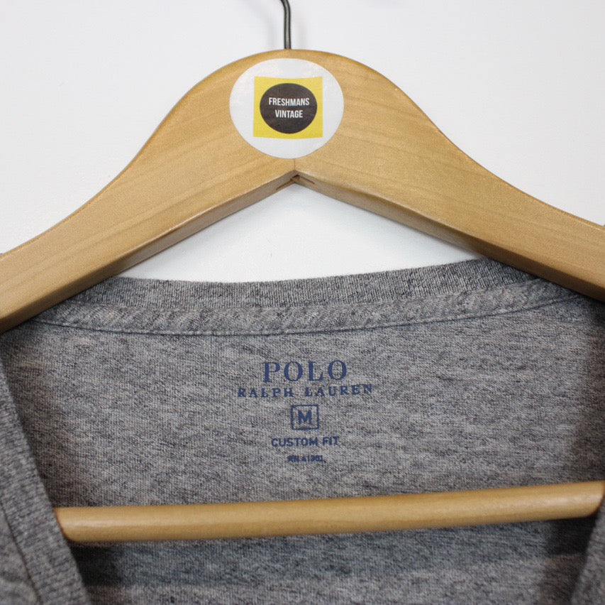 Vintage 00's Polo Ralph Lauren Grey Long Sleeve T-Shirt Size on label: Medium Our recommended size: Medium Pit to pit (inches): 19 Length (inches): 27.5 All products listed are vintage unless stated otherwise in the description. These items are pre-loved and pre-worn, resulting in small signs of wear and minor fading. We think this adds to their unique authenticity, but if an item has any major flaws these will be stated below. Please contact us if you have any further questions!