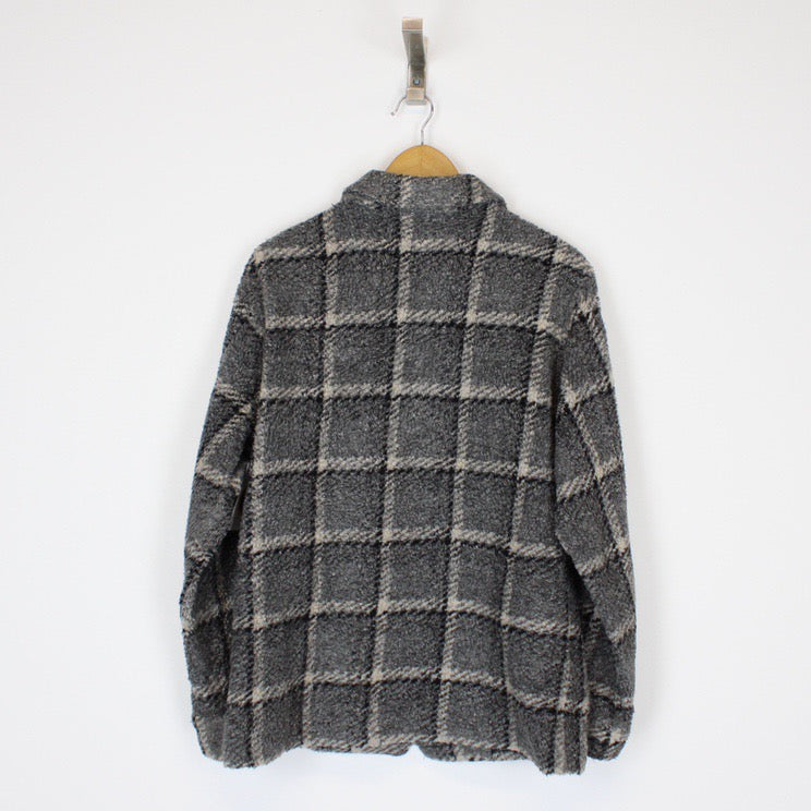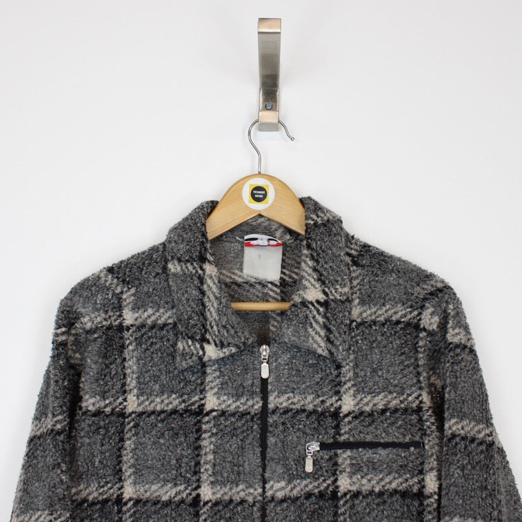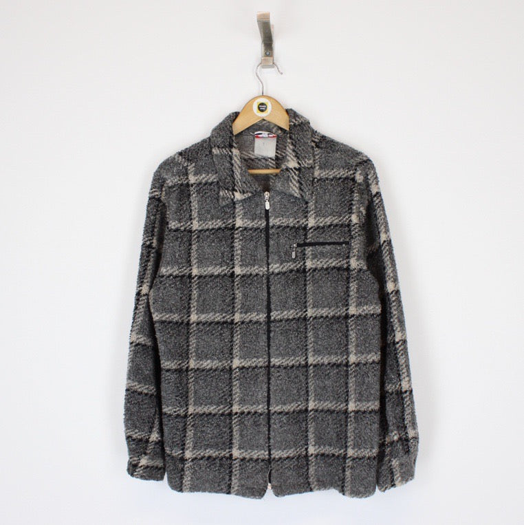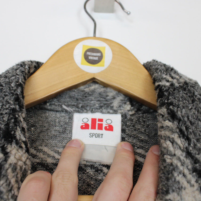 Vintage 00's Alia Grey Checked Full Zip Sherpa Fleece Jacket Size on label: N/A Our recommended size: Medium Pit to pit (inches): 21 Length (inches): 28 All products listed are vintage unless stated otherwise in the description. These items are pre-loved and pre-worn, resulting in small signs of wear and minor fading. We think this adds to their unique authenticity, but if an item has any major flaws these will be stated below. Please contact us if you have any further questions!