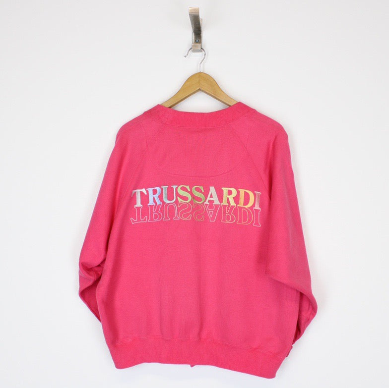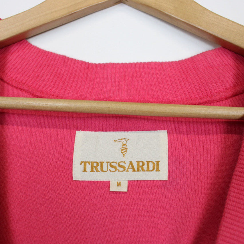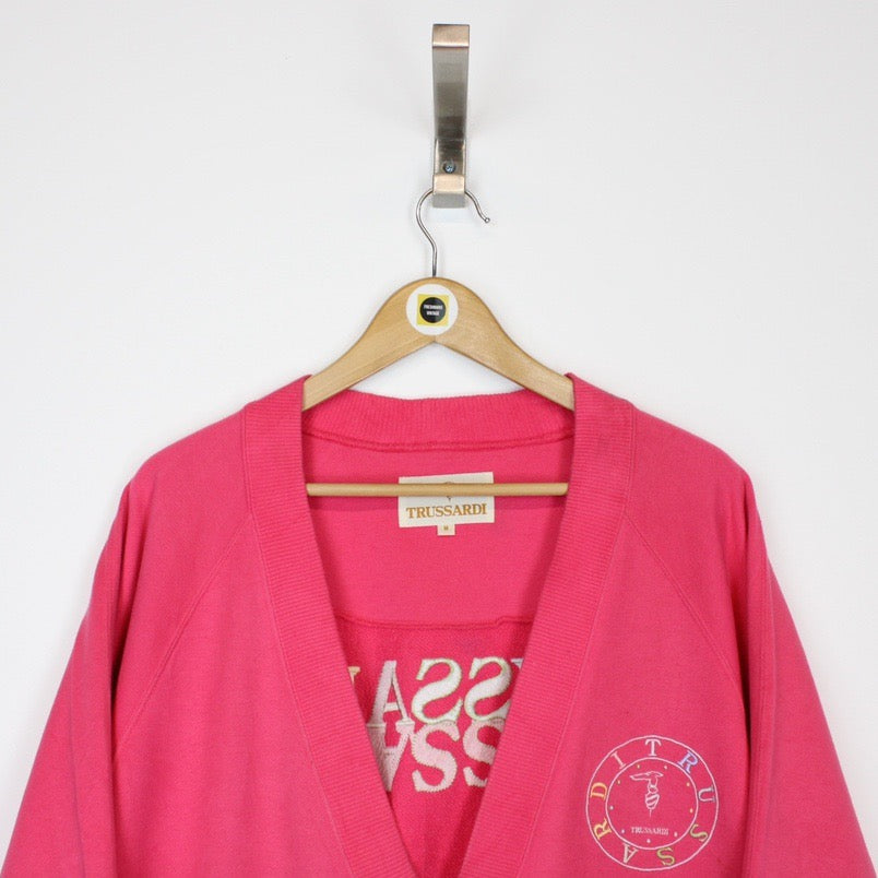 Vintage 90's Trussardi Pink Spellout Cardigan Jacket Size on label: Women's Medium Our recommended size: Women's Medium Pit to pit (inches): 23 Length (inches): 24 All products listed are vintage unless stated otherwise in the description. These items are pre-loved and pre-worn, resulting in small signs of wear and minor fading. We think this adds to their unique authenticity, but if an item has any major flaws these will be stated below. - The item does have a mark to the right sleeve and also a couple marks to the left sleeve, this is reflected in the price Please contact us if you have any further questions!