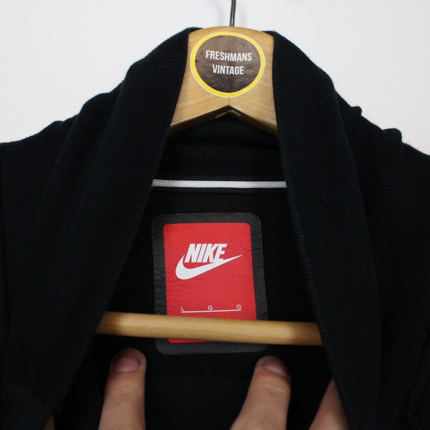Nike Tech Black Full Zip Spellout Sweatshirt Jacket Size on label: Large Our recommended size: Small Pit to pit (inches): 21 Length (inches): 23 All products listed are vintage unless stated otherwise in the description. These items are pre-loved and pre-worn, resulting in small signs of wear and sometimes minor flaws. We think this adds to their unique authenticity, but if an item has any bigger flaws these will be stated. - The item does have a mark to the cuff of the left sleeve, this is reflected in the price Please contact us if you have any further questions!