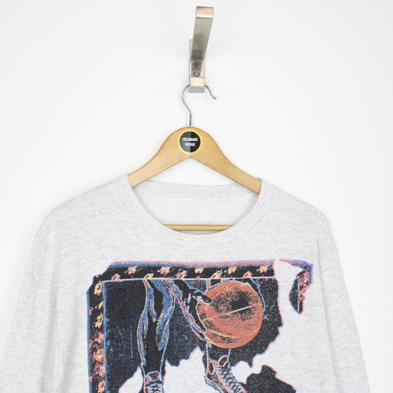 Vintage 1993 Converse Grey and Multicoloured Graphic Spellout Sweatshirt Jumper