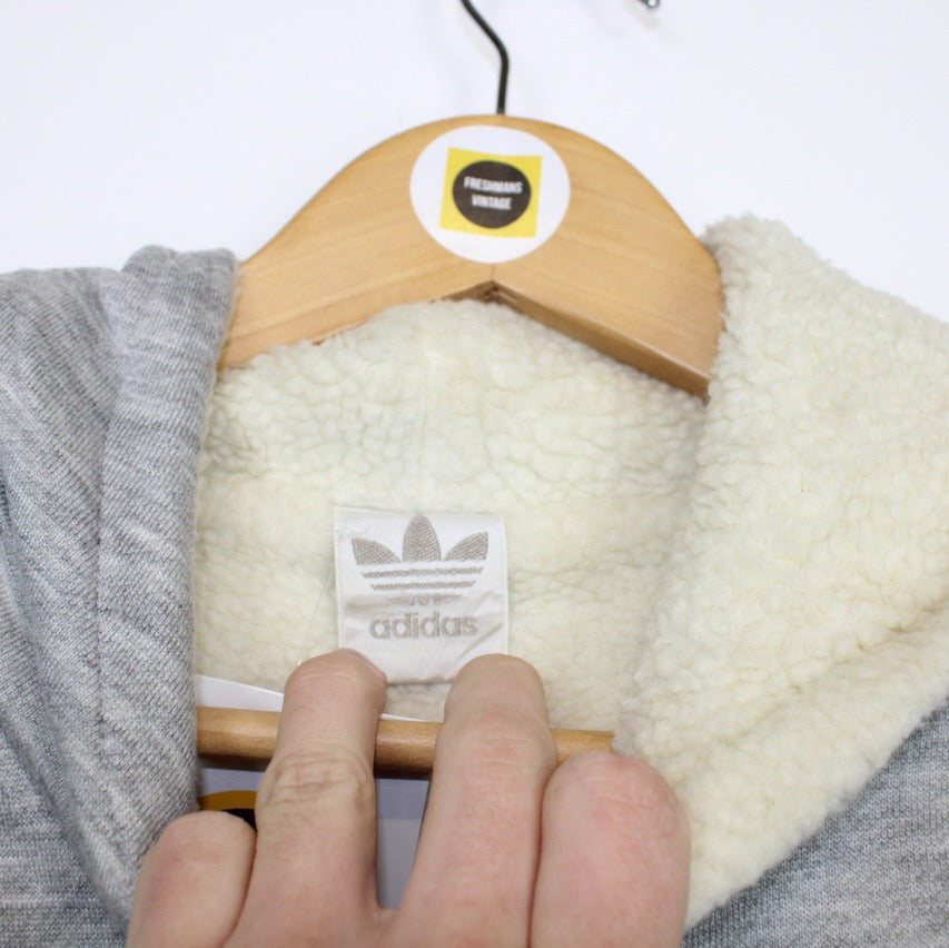 Rare Vintage 80's Adidas Grey and Black Zip Up Fleece Lined Spellout Hoodie Jacket