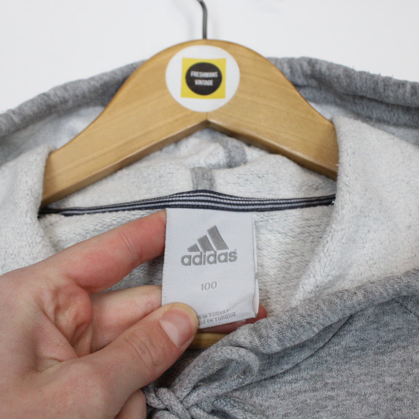 Vintage 00's Adidas Grey Pullover Spellout Hoodie Jumper Size on label: 100 Our recommended size: Small Pit to pit (inches): 19.5 Length (inches): 26 All products listed are vintage unless stated otherwise in the description. These items are pre-loved and pre-worn, resulting in small signs of wear and minor fading. We think this adds to their unique authenticity, but if an item has any major flaws these will be stated below. Please contact us if you have any further questions!