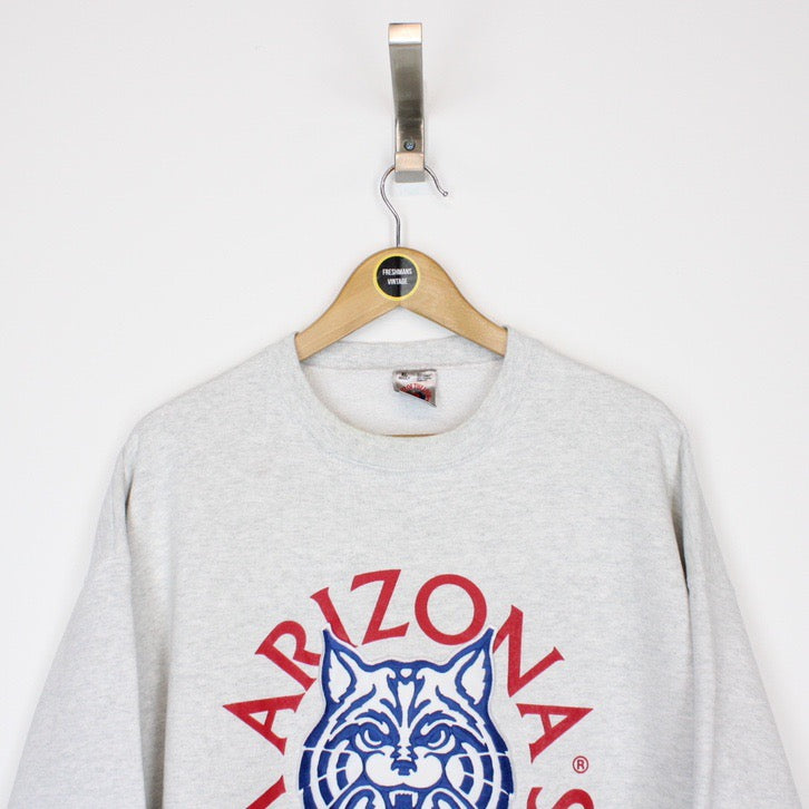 Vintage 90's Arizona Wildcats USA Grey Crew Neck Spellout Sweatshirt Jumper Size on label: XL Our recommended size: XL Pit to pit (inches): 25 Length (inches): 28.5 All products listed are vintage unless stated otherwise in the description. These items are pre-loved and pre-worn, resulting in small signs of wear and minor fading. We think this adds to their unique authenticity - The sweatshirt does have a few light marks to the front, this is reflected in the price Please contact us if you have any further questions!