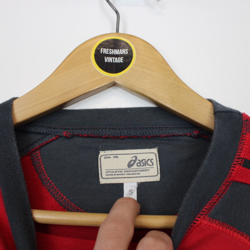 Vintage 90's Asics Red and Grey Crew Neck Spellout Sweatshirt Jumper Size on label: Small Our recommended size: Small Pit to pit (inches): 20.5 Length (inches): 25 All products listed are vintage unless stated otherwise in the description. These items are pre-loved and pre-worn, resulting in small signs of wear and minor fading. We think this adds to their unique authenticity, but if an item has any major flaws these will be stated below. Please contact us if you have any further questions!