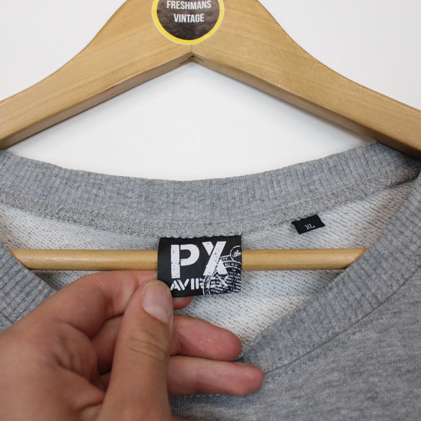 Vintage 00's Avirex Grey and Black Spellout Sweatshirt Jumper Size on label: XL Our recommended size: Slim Fit XL Pit to pit (inches): 21.5 Length (inches): 28.5 All products listed are vintage unless stated otherwise in the description. These items are pre-loved and pre-worn, resulting in small signs of wear and minor fading. We think this adds to their unique authenticity, but if an item has any major flaws these will be stated below. Please contact us if you have any further questions!