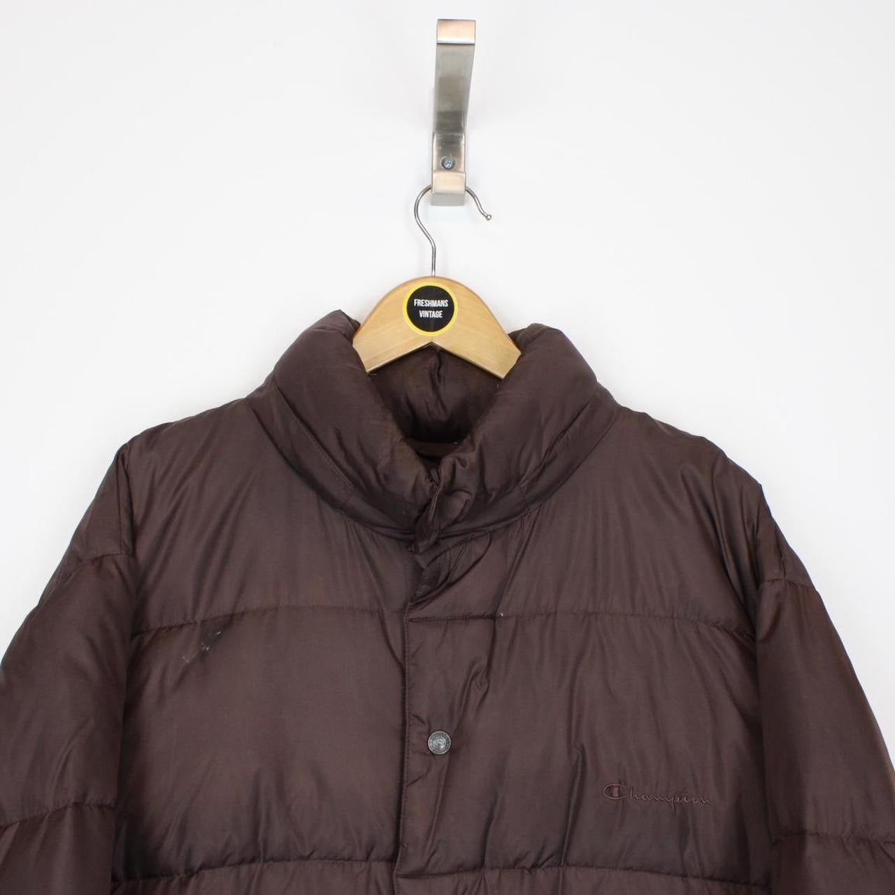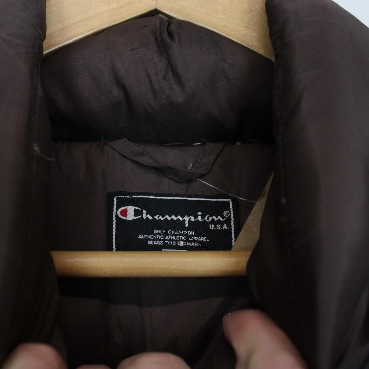Vintage 90s Champion Brown Full Zip Nylon Waterproof Down Puffer Jacket