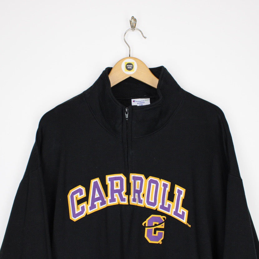 Vintage 90's Champion Black Carroll University USA Pullover 1/4 Zip Spellout Sweatshirt Jumper Size on label: XXL Our recommended size: XXL Pit to pit (inches): 28 Length (inches): 30 All products listed are vintage unless stated otherwise in the description. These items are pre-loved and pre-worn, resulting in small signs of wear and minor fading. We think this adds to their unique authenticity, but if an item has any major flaws these will be stated below. Please contact us if you have any further questions!