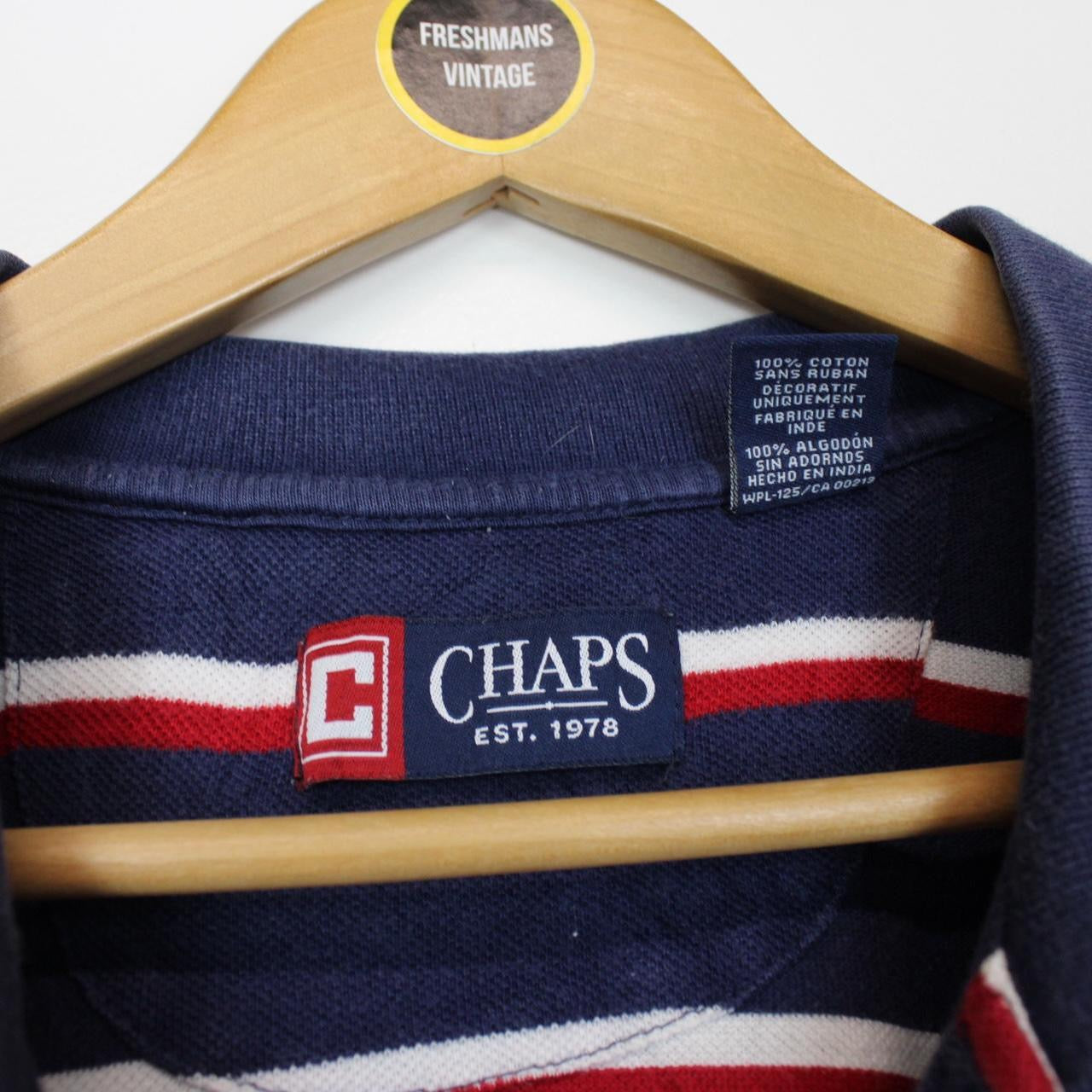 Vintage Chaps Ralph Lauren Navy Blue, Red and White Striped Short Sleeve Polo Shirt