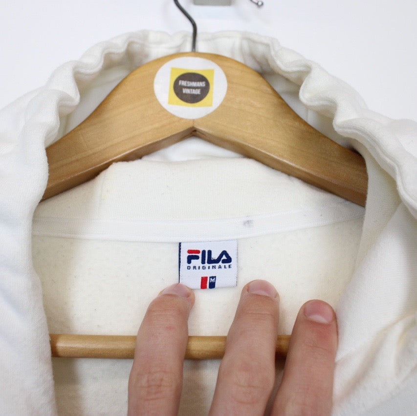 Vintage 00's Fila White Pullover Spellout Hoodie Jumper Size on label: Medium Our recommended size: Small Pit to pit (inches): 22.5 Length (inches): 25 All products listed are vintage unless stated otherwise in the description. These items are pre-loved and pre-worn, resulting in small signs of wear and minor fading. We think this adds to their unique authenticity, but if an item has any major flaws these will be stated below. Please contact us if you have any further questions!