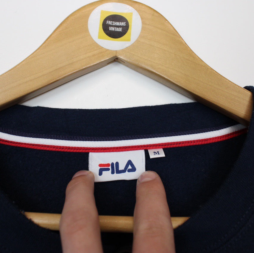 Vintage 00's Fila Navy Blue Crew Neck Spellout Sweatshirt Jumper Size on label: Medium Our recommended size: Small Pit to pit (inches): 21.5 Length (inches): 25 All products listed are vintage unless stated otherwise in the description. These items are pre-loved and pre-worn, resulting in small signs of wear and minor fading. We think this adds to their unique authenticity, but if an item has any major flaws these will be stated below. Please contact us if you have any further questions!