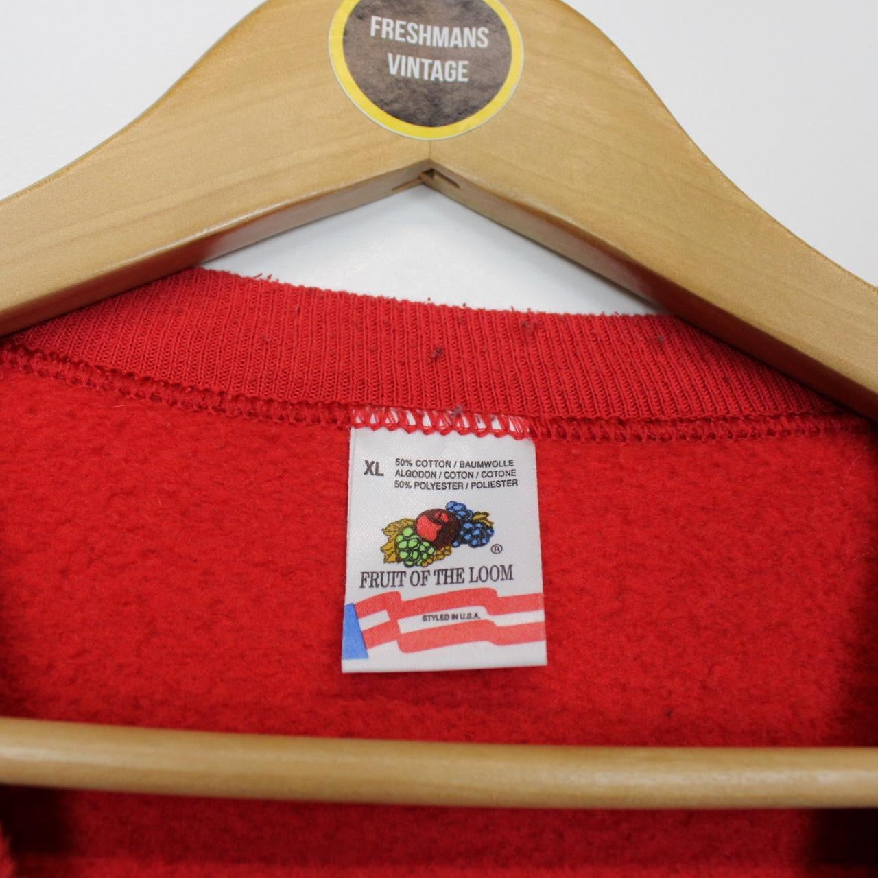 Vintage 90s Fruit of the Loom Red Spellout Sweatshirt Jumper Size on label: XL Our recommended size: XL Pit to pit (inches): 25.5 Length (inches): 28 Condition: Very good condition All our products are pre-worn unless stated otherwise in the description. These items have been worn, resulting in signs of wear and use. If an item has any major flaws these will be stated above in the condition section. Please contact us if you have any further questions!