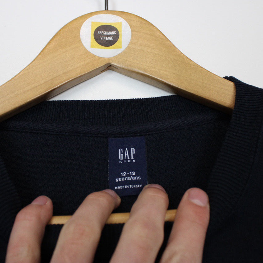 Vintage 00's GAP Navy Blue Spellout Sweatshirt Jumper Size on label: 12/13 yrs Our recommended size: XS/S Pit to pit (inches): 23 Length (inches): 24.5 All products listed are vintage unless stated otherwise in the description. These items are pre-loved and pre-worn, resulting in small signs of wear and minor fading. We think this adds to their unique authenticity, but if an item has any major flaws these will be stated below. Please contact us if you have any further questions!