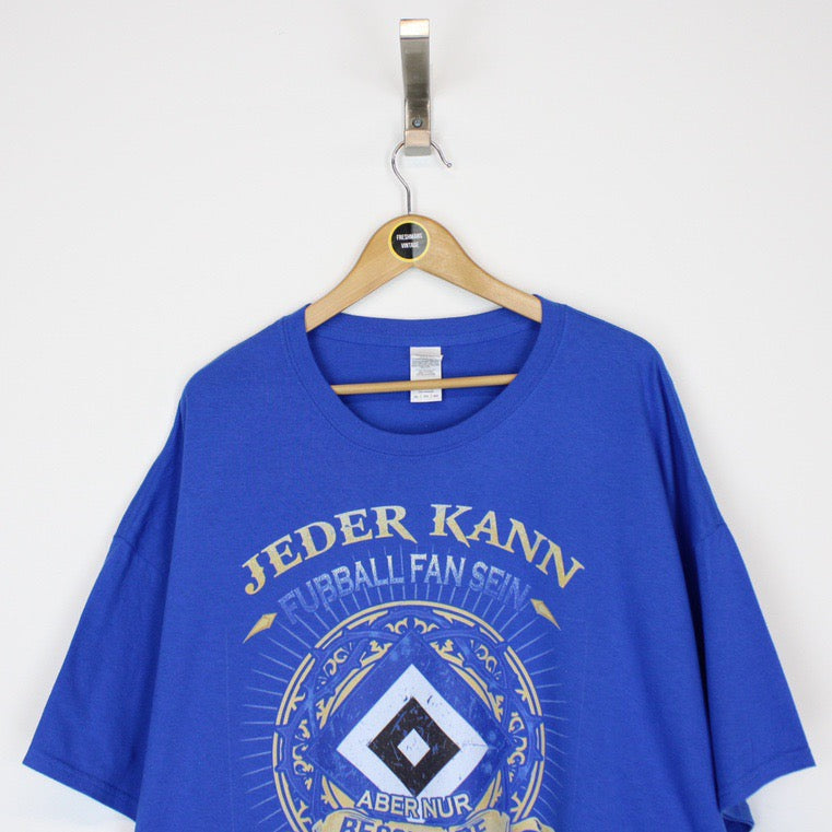 Vintage 90's Hamburger SV Blue Short Sleeve Football T-Shirt Size on label: 3XL Our recommended size: XXL Pit to pit (inches): 26.5 Length (inches): 31.5 All products listed are vintage unless stated otherwise in the description. These items are pre-loved and pre-worn, resulting in small signs of wear and sometimes minor flaws. We think this adds to their unique authenticity, but if an item has any bigger flaws these will be stated. Please contact us if you have any further questions!