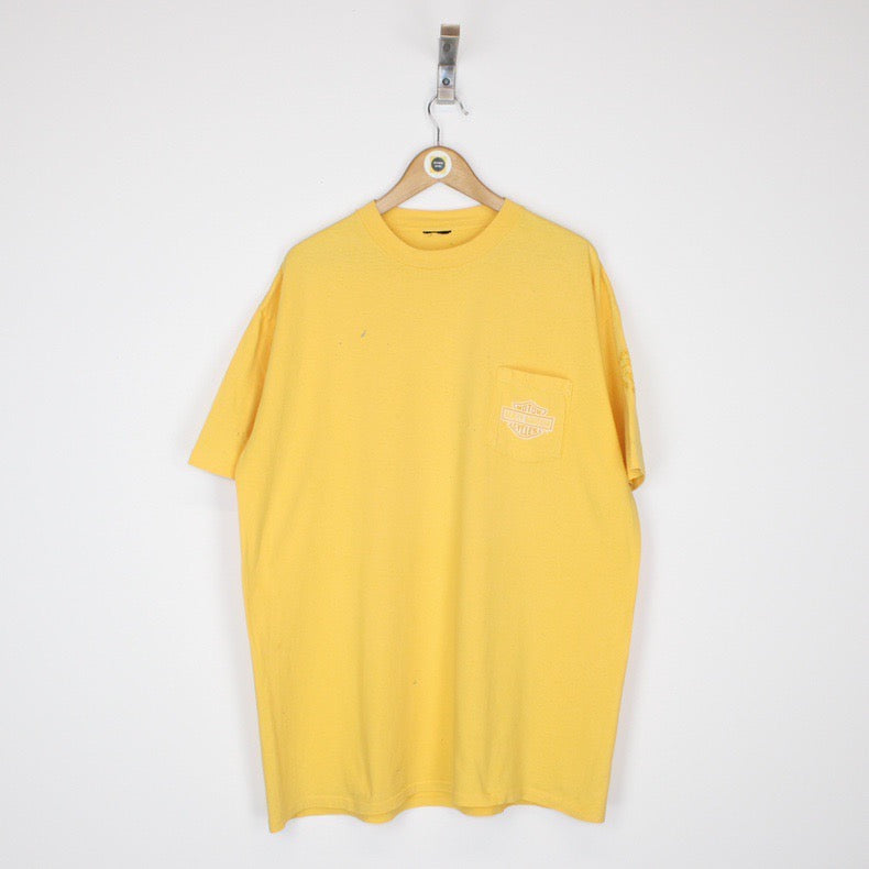 Vintage 90's Harley Davidson Ohio Yellow Short Sleeve Spellout T-Shirt Size on label: N/A Our recommended size: XL Pit to pit (inches): 25 Length (inches): 31 All products listed are vintage unless stated otherwise in the description. These items are pre-loved and pre-worn, resulting in small signs of wear and minor fading. We think this adds to their unique authenticity, but if an item has any major flaws these will be stated below. - The t-shirt has multiple paint marks throughout, this is reflected in the price Please contact us if you have any further questions!