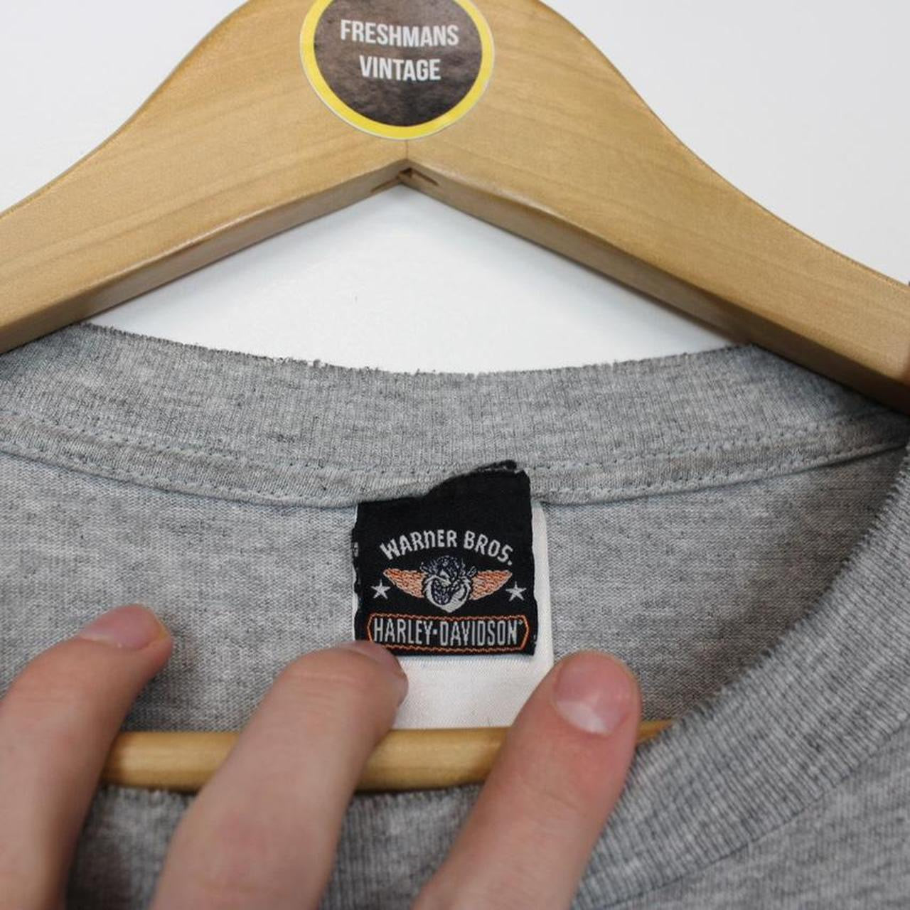 Vintage 90s Harley Davidson Warner Bros Grey Short Sleeve Spellout T-Shirt Size on label: N/A Our recommended size: Small Pit to pit (inches): 19 Length (inches): 26 All products listed are vintage unless stated otherwise in the description. These items are pre-loved and pre-worn, resulting in small signs of wear and minor fading. We think this adds to their unique authenticity, but if an item has any major flaws these will be stated below. Please contact us if you have any further questions!