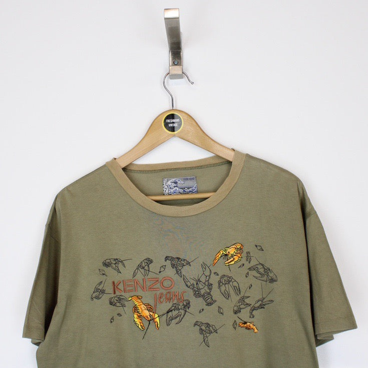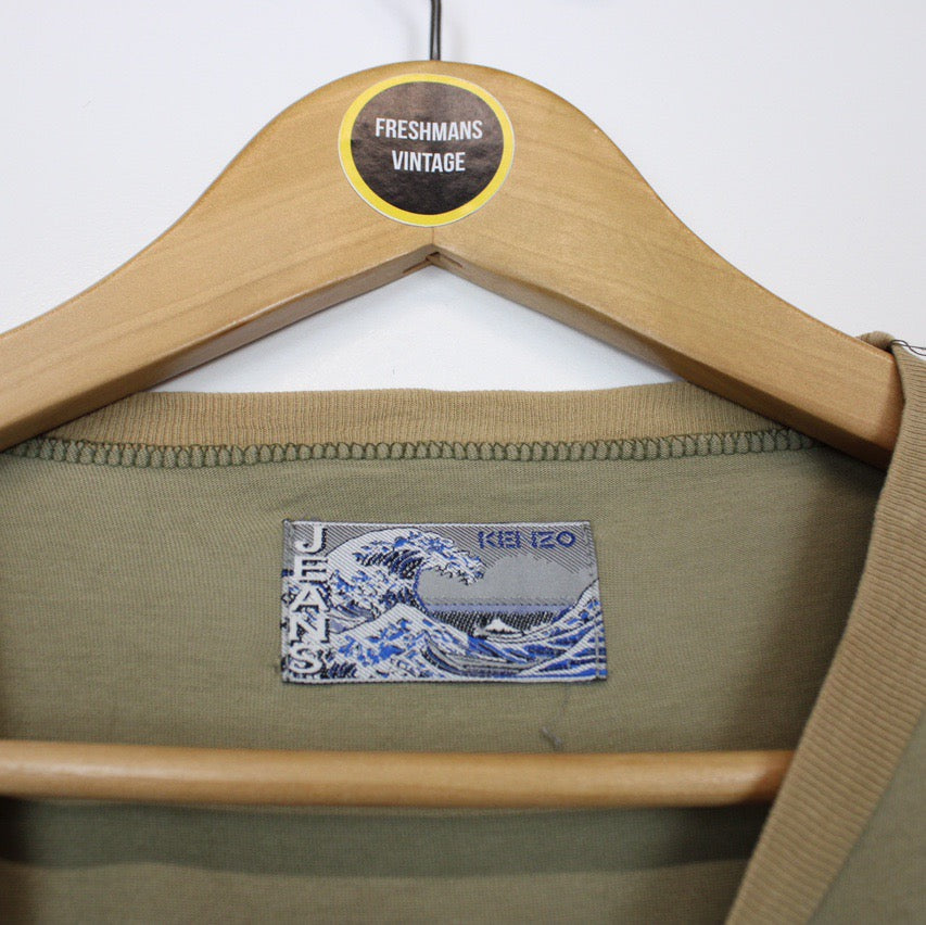 Vintage 90's Kenzo Jeans Green Spellout Short Sleeve T-Shirt Size on label: F Our recommended size: Small Pit to pit (inches): 21 Length (inches): 25 All products listed are vintage unless stated otherwise in the description. These items are pre-loved and pre-worn, resulting in small signs of wear and sometimes minor flaws. We think this adds to their unique authenticity, but if an item has any bigger flaws these will be stated. Please contact us if you have any further questions!