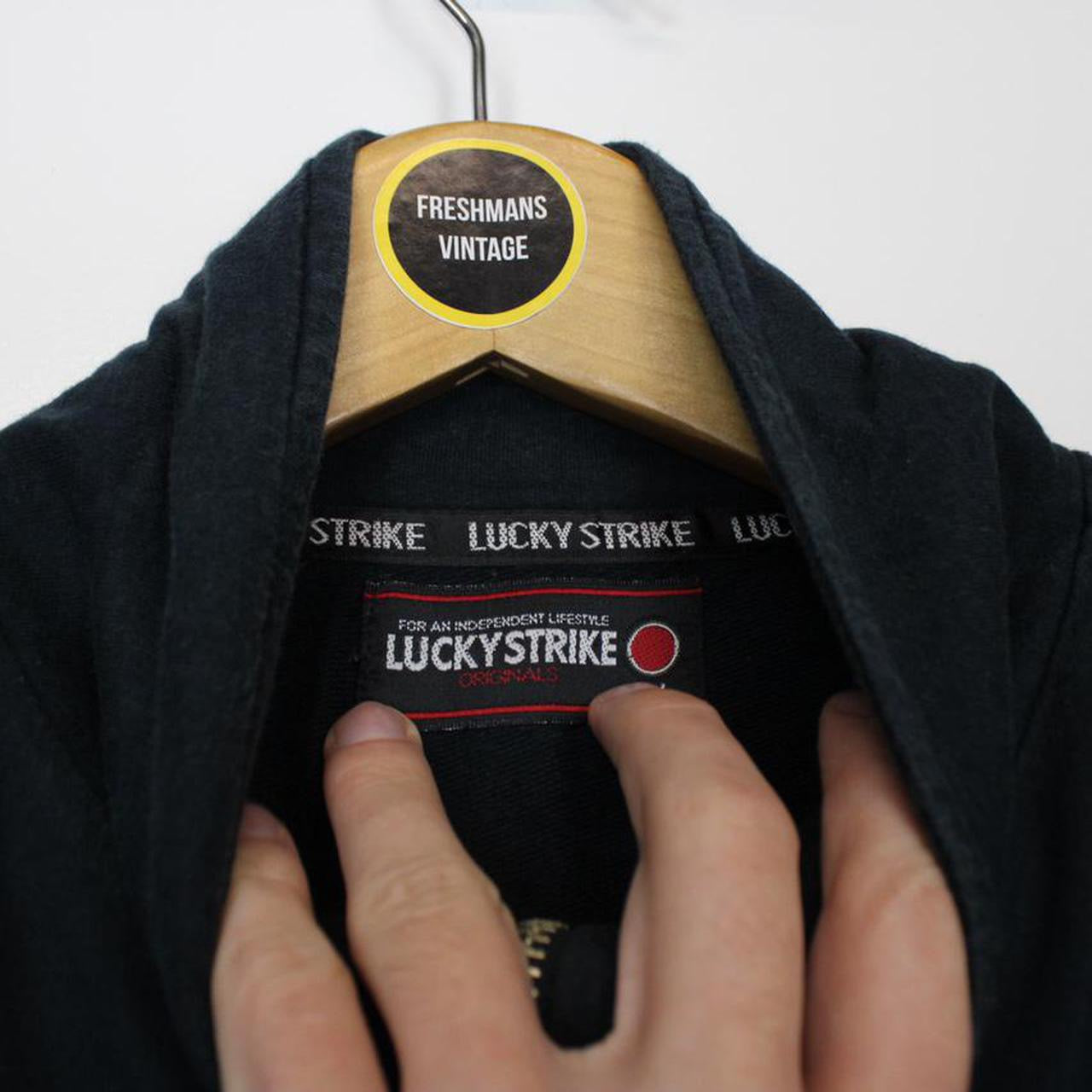 Vintage 90's Lucky Strike Black Pullover 1/4 Zip Spellout Sweatshirt Jumper Size on label: Large Our recommended size: Large Pit to pit (inches): 23 Length (inches): 28 All products listed are vintage unless stated otherwise in the description. These items are pre-loved and pre-worn, resulting in small signs of wear and minor fading. We think this adds to their unique authenticity Please contact us if you have any further questions!