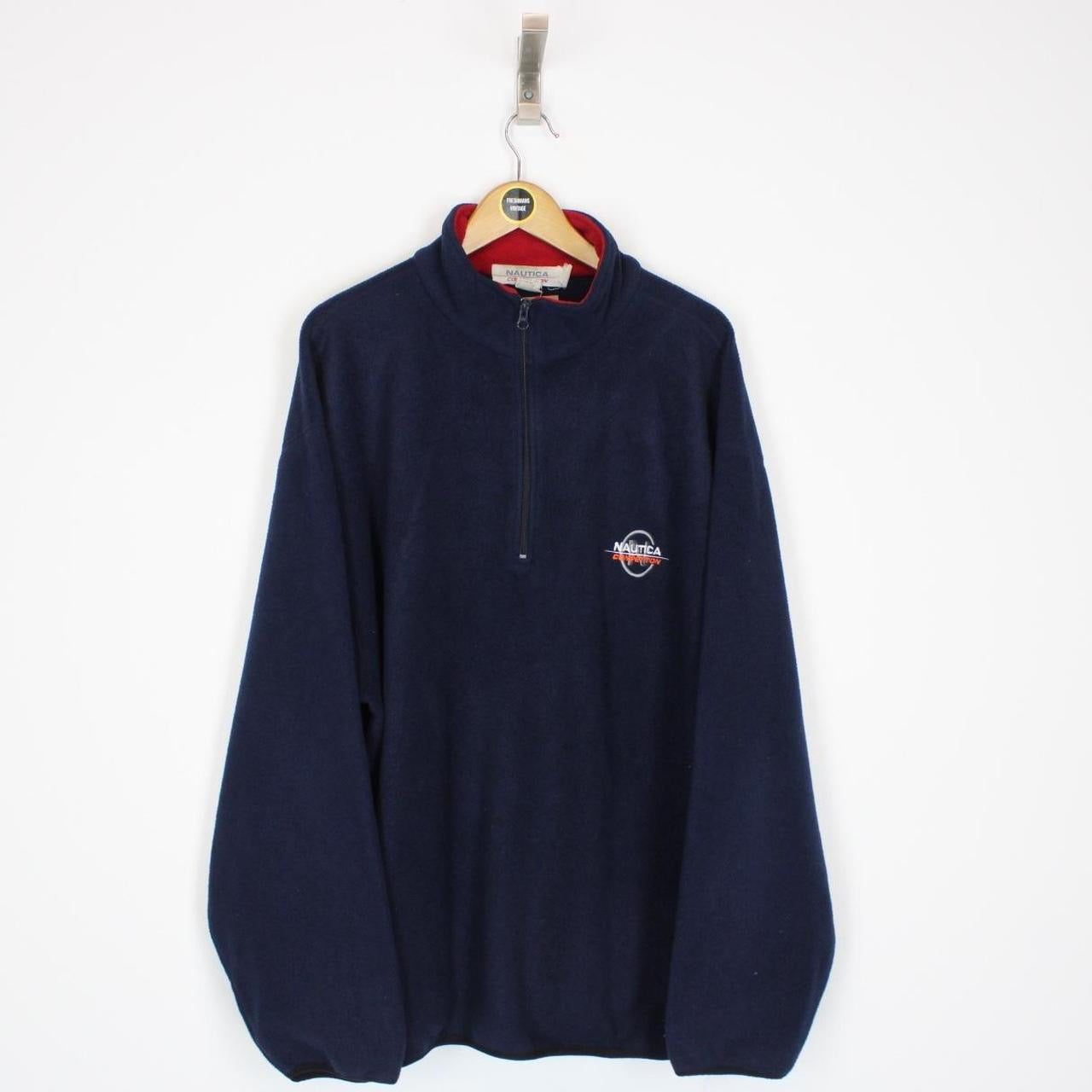 Vintage 00s Nautica Competition Navy Blue 1/4 Zip Fleece Jumper