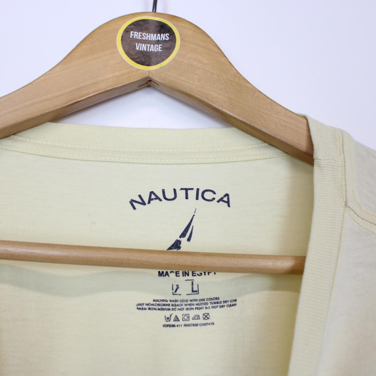 Vintage 00's Nautica Yellow Crew Neck Short Sleeve T-Shirt Size on label: XL Our recommended size: XL Pit to pit (inches): 26.5 Length (inches): 29 All products listed are vintage unless stated otherwise in the description. These items are pre-loved and pre-worn, resulting in small signs of wear and minor fading. We think this adds to their unique authenticity, but if an item has any major flaws these will be stated below. - The t-shirt does have a few light marks to the front, this is reflected in the price Please contact us if you have any further questions!